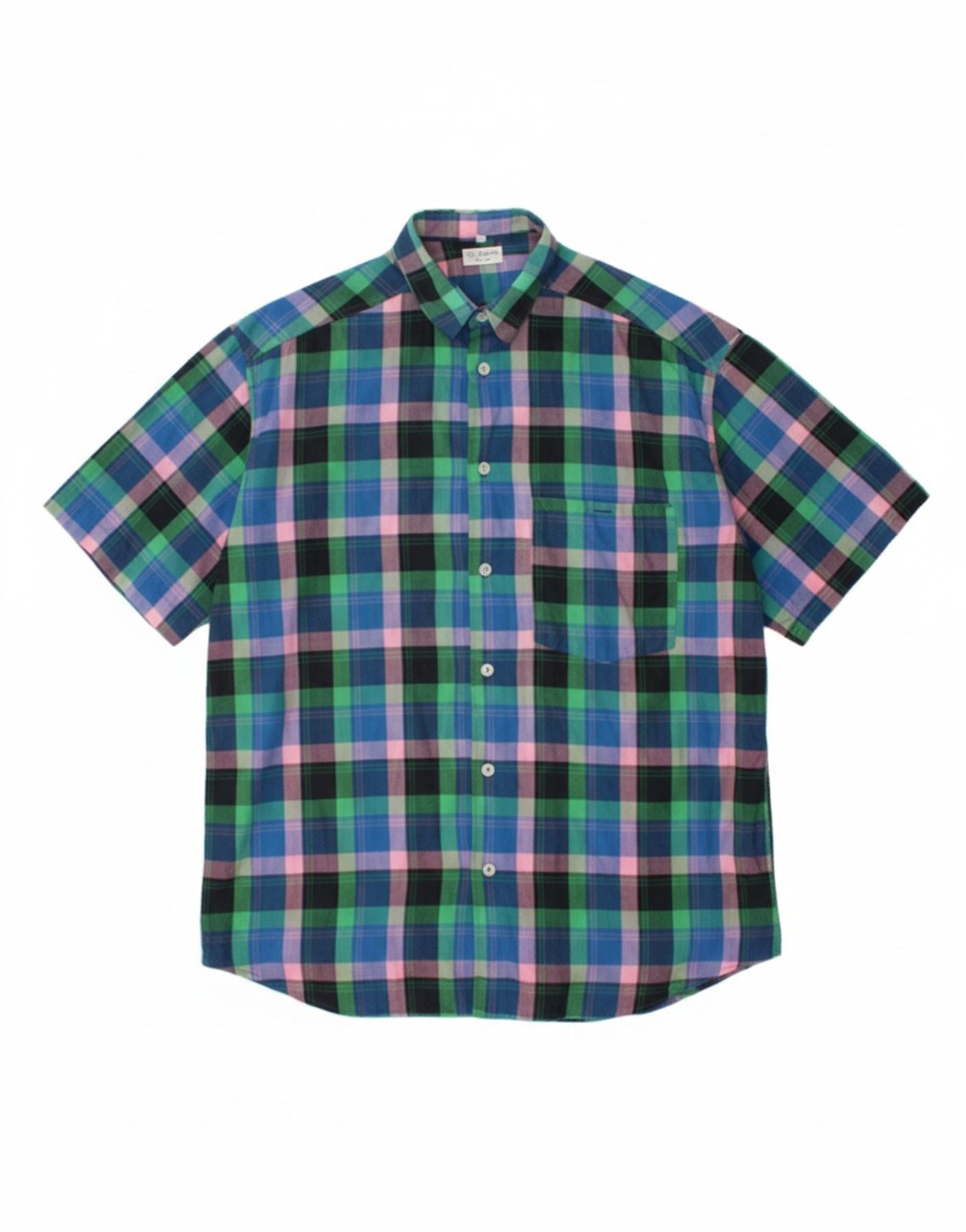 Camisa masculina de manga curta PAL ZILERI de algodão xadrez médio multicolorido