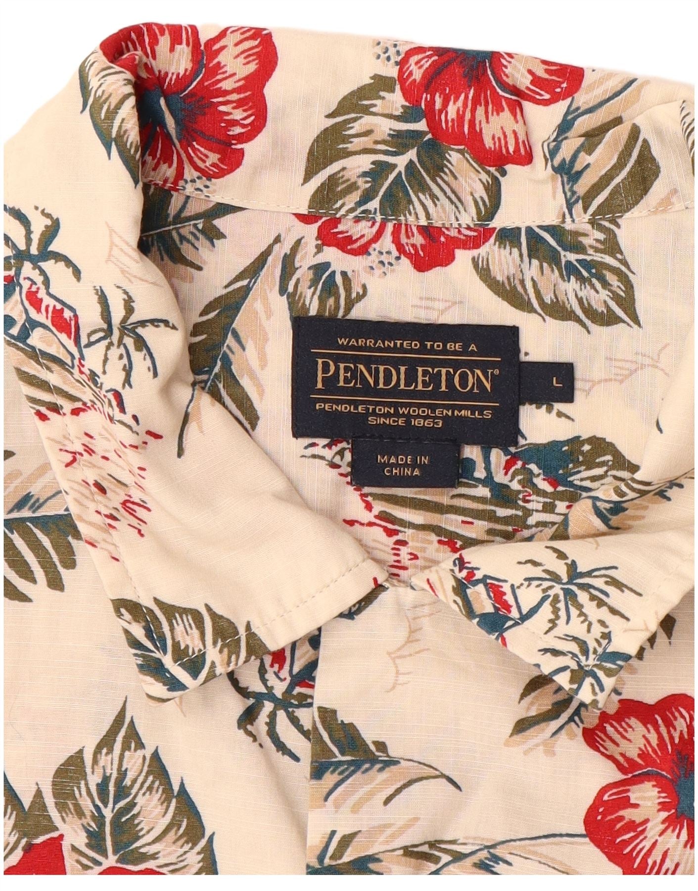 Camisa masculina de manga curta PENDLETON grande bege floral algodão havaiano