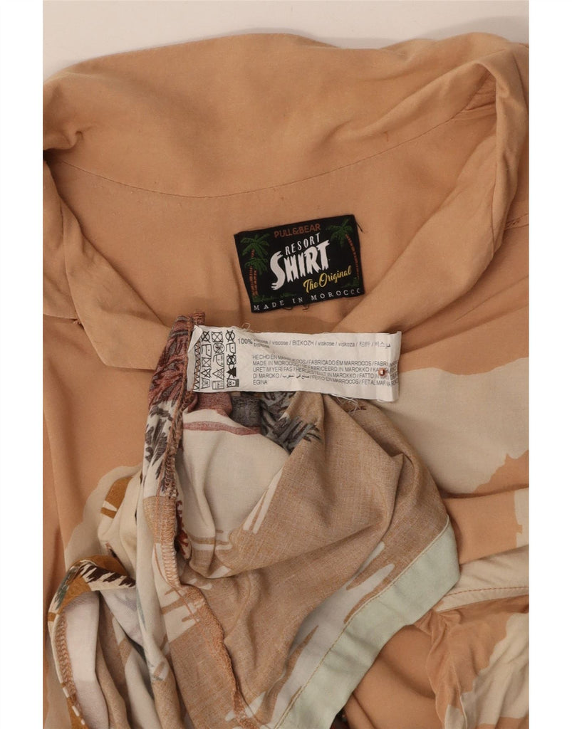Camisa masculina de manga curta PULL & BEAR média rosa viscose havaiana
