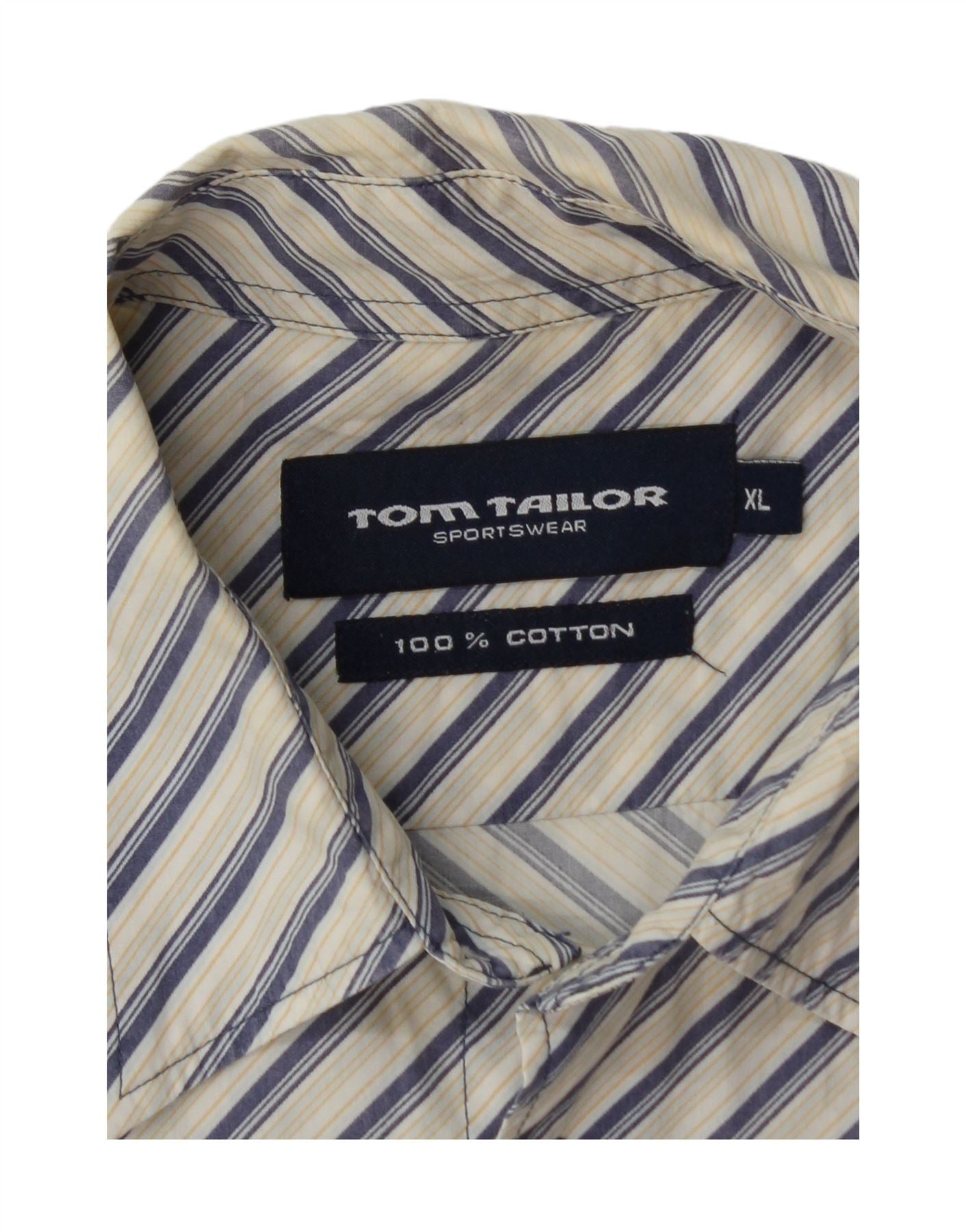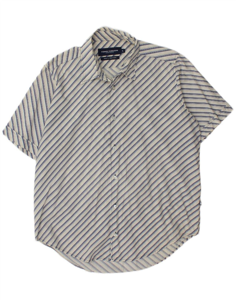 Camisa masculina de manga curta TOM TAILOR XL algodão listrado branco