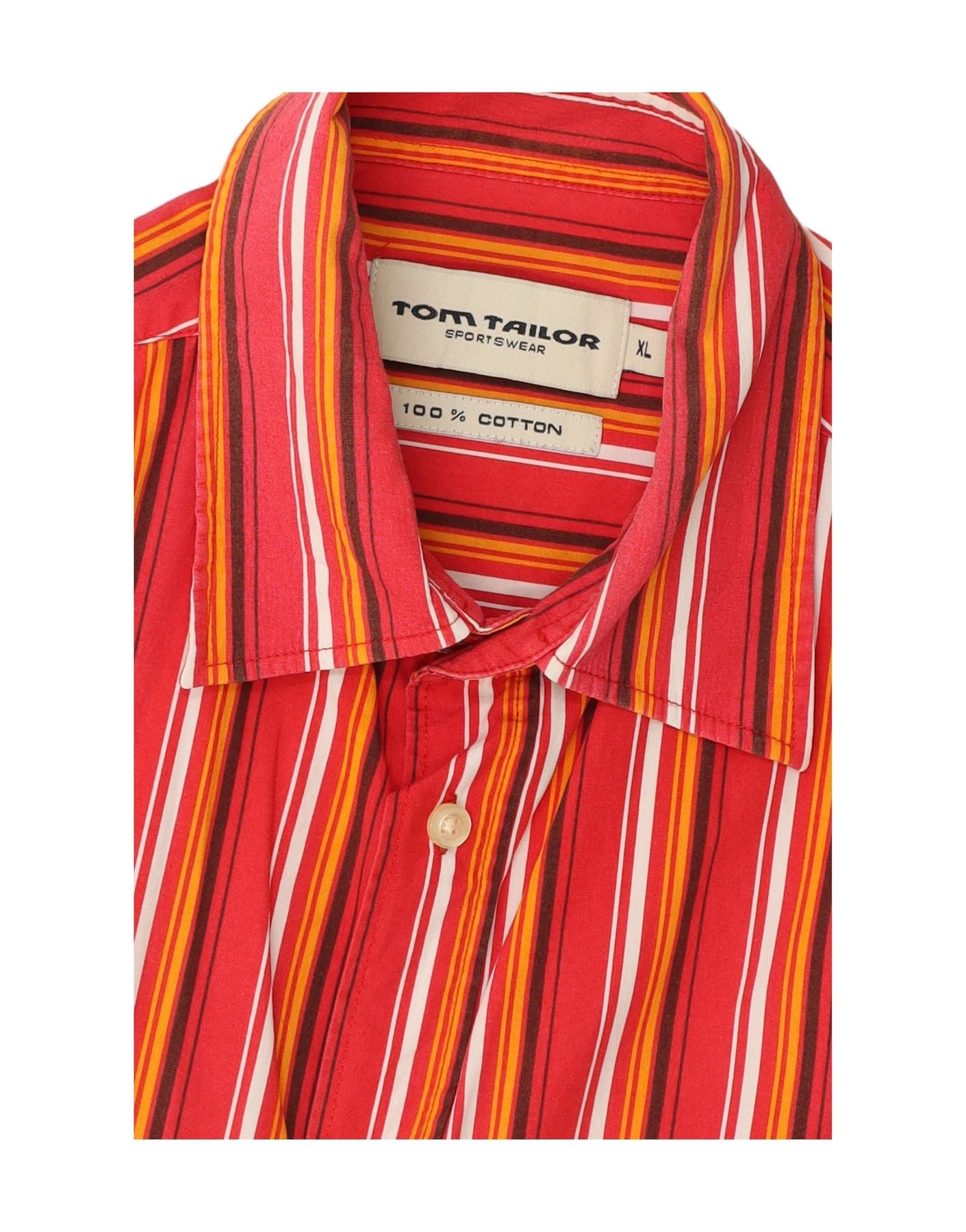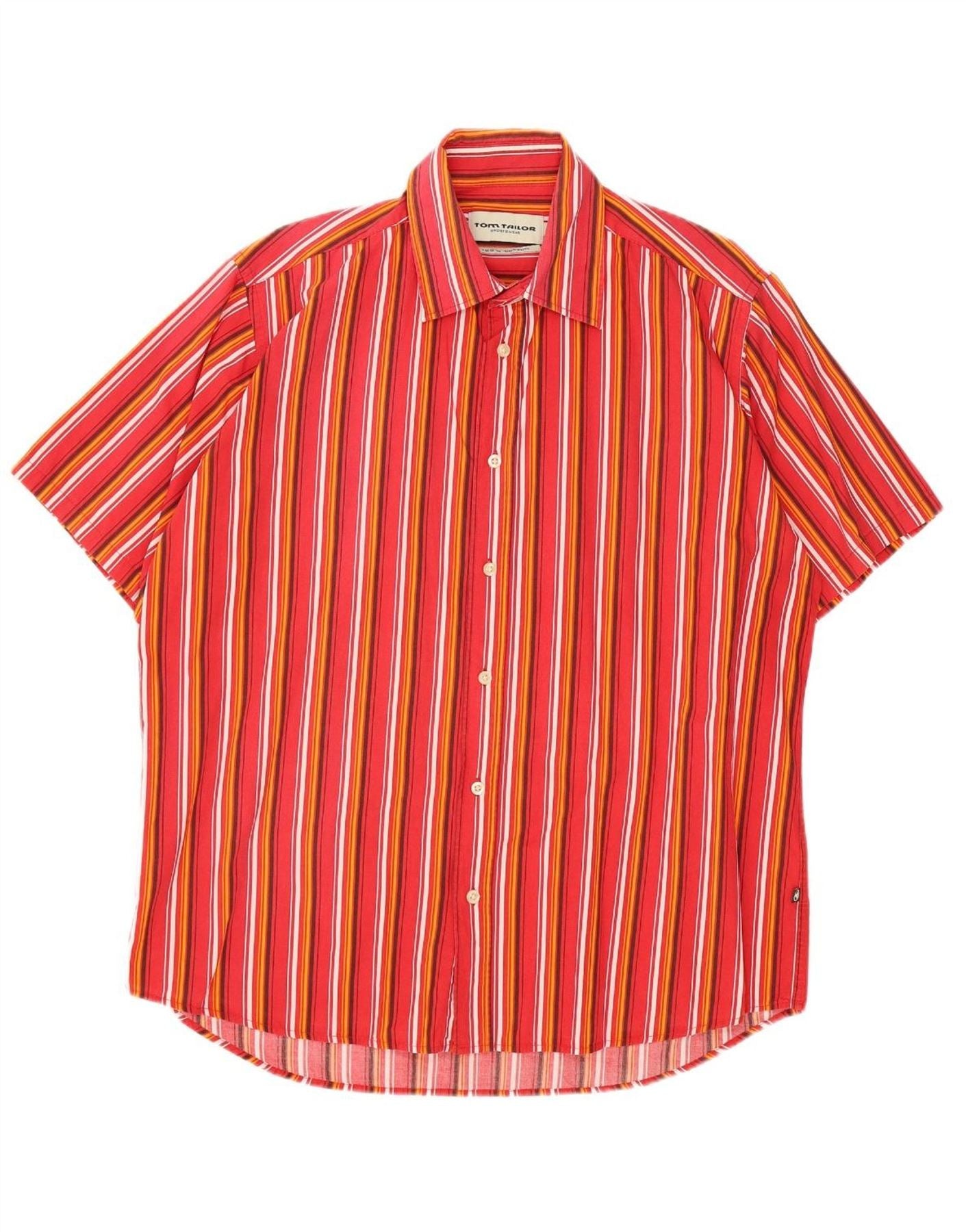 Camisa masculina de manga curta TOM TAILOR XL algodão listrado vermelho