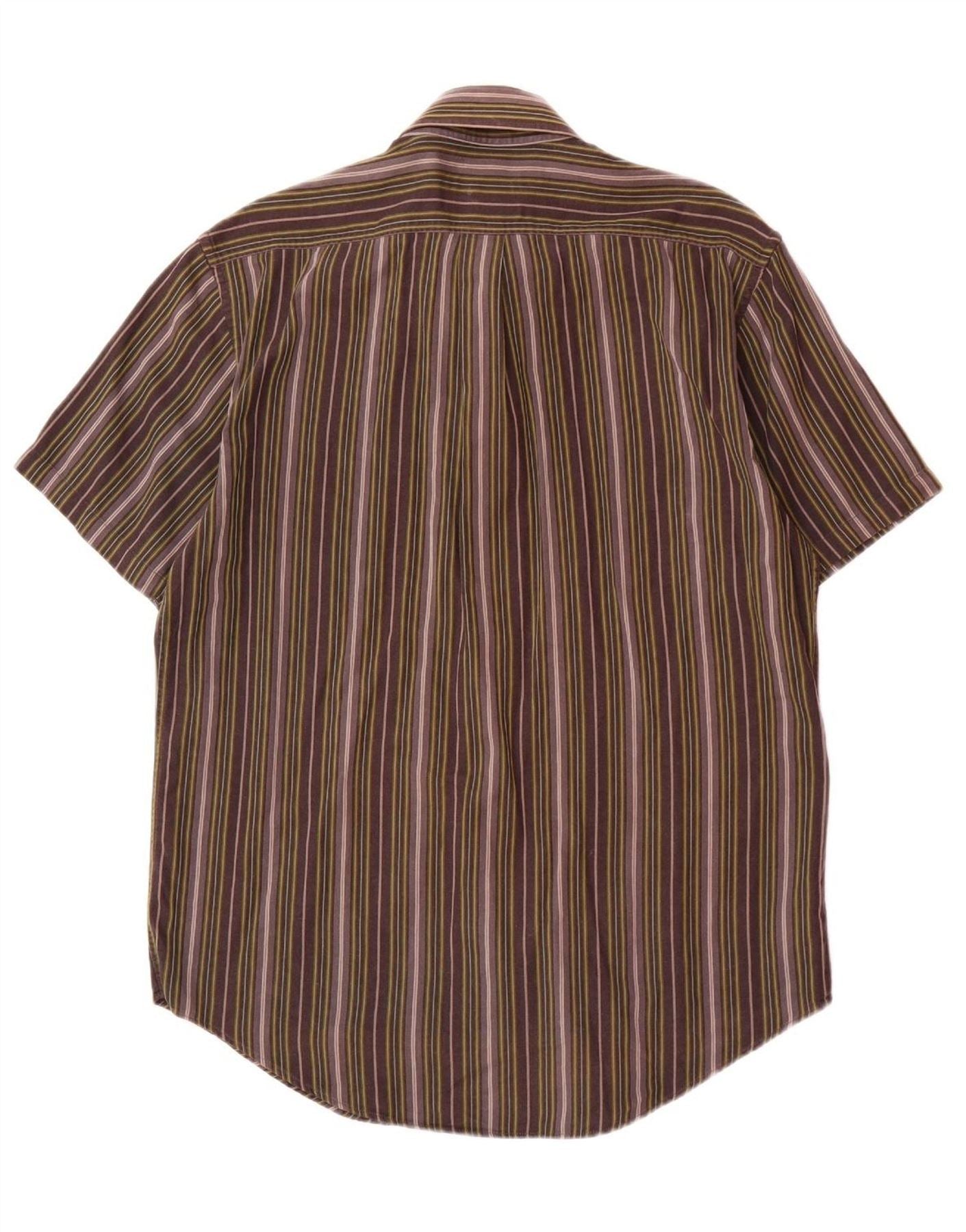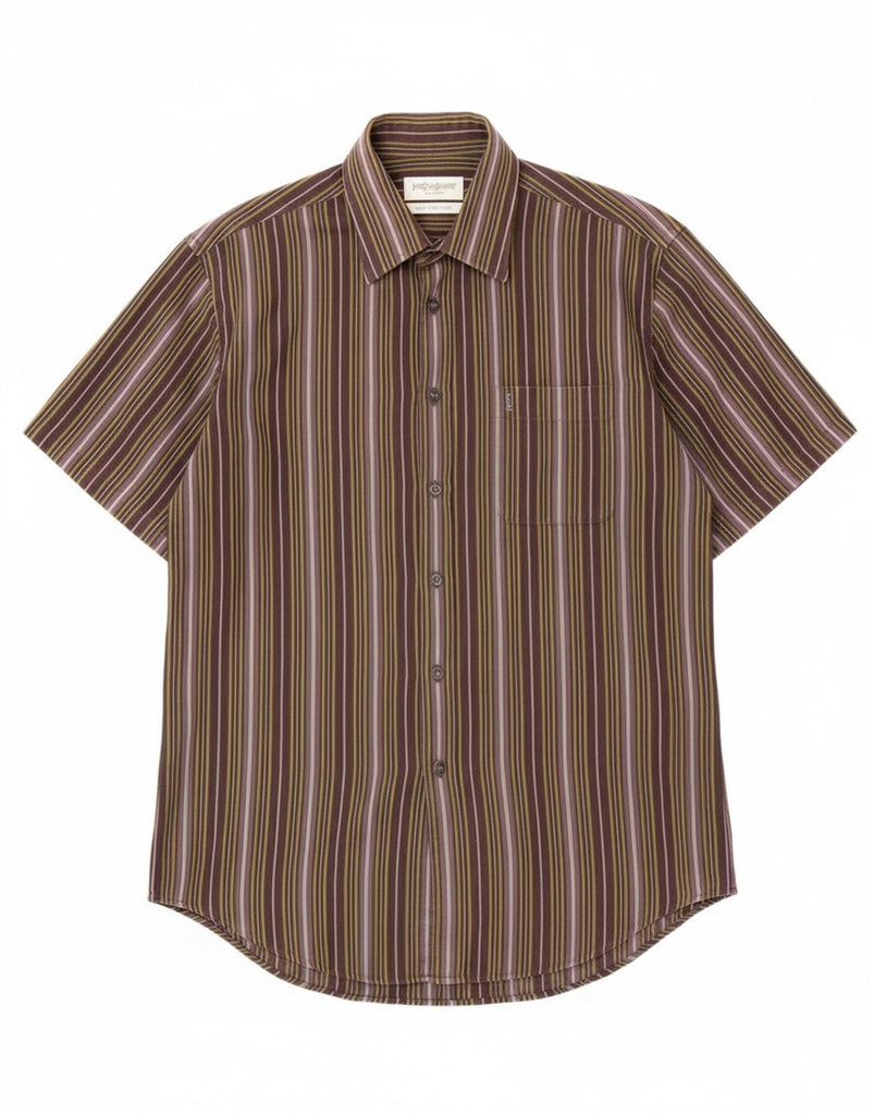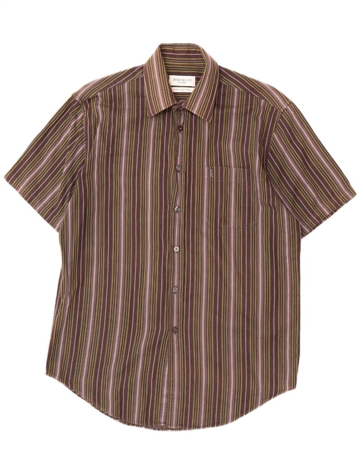 Camisa masculina de manga curta YVES SAINT LAURENT algodão listrado roxo médio