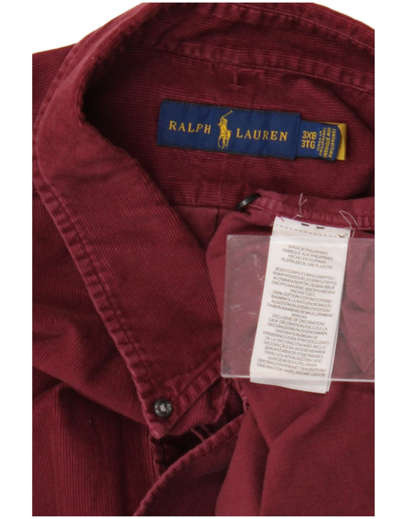 Camisa masculina de veludo cotelê grande e alta RALPH LAUREN 3XL algodão borgonha