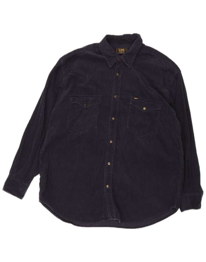 - Descrição da IA: Esta camisa masculina de veludo cotelê Lee é confeccionada em veludo cotelê 100% algodão em um rico azul marinho. Possui decote clássico com gola e mangas compridas. O botão frontal e o ajuste regular oferecem um apelo atemporal. Os bolsos de estilo ocidental acrescentam detalhes funcionais. Botões tonais completam o design clássico.