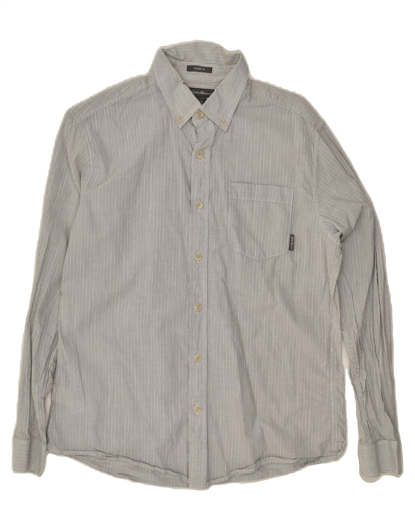 Camisa masculina EDDIE BAUER Classic Fit algodão listrado cinza médio
