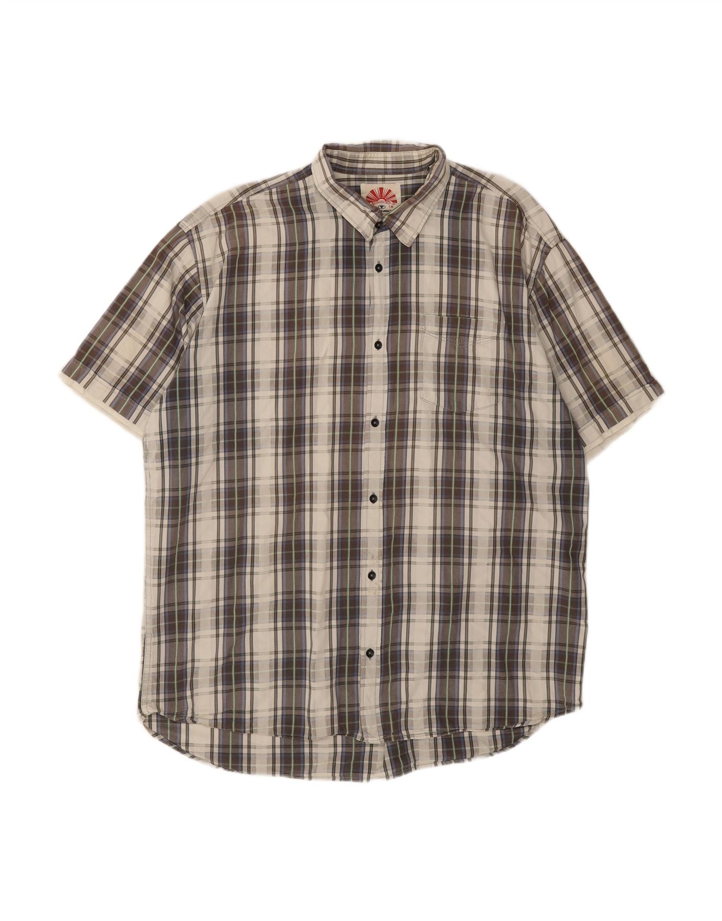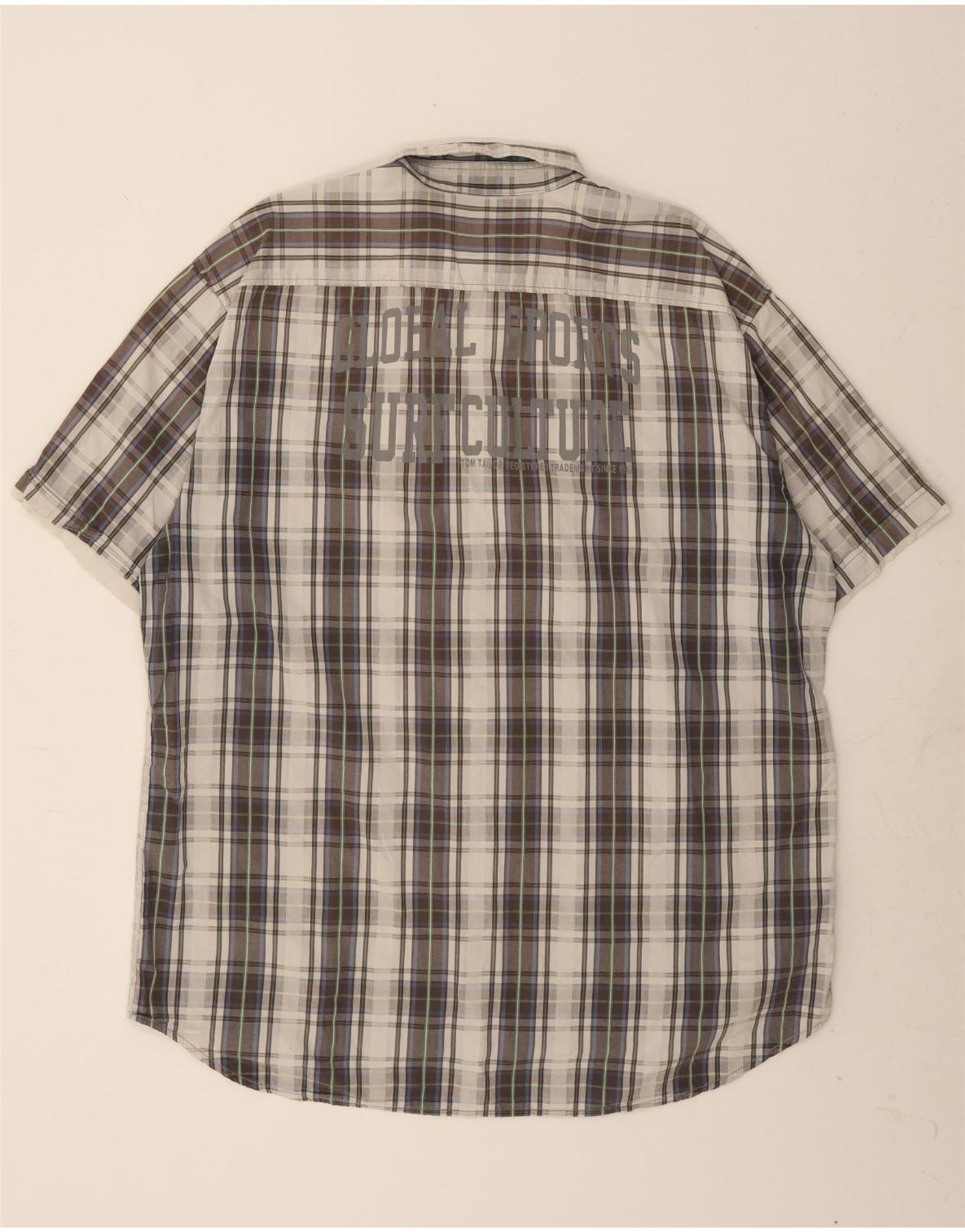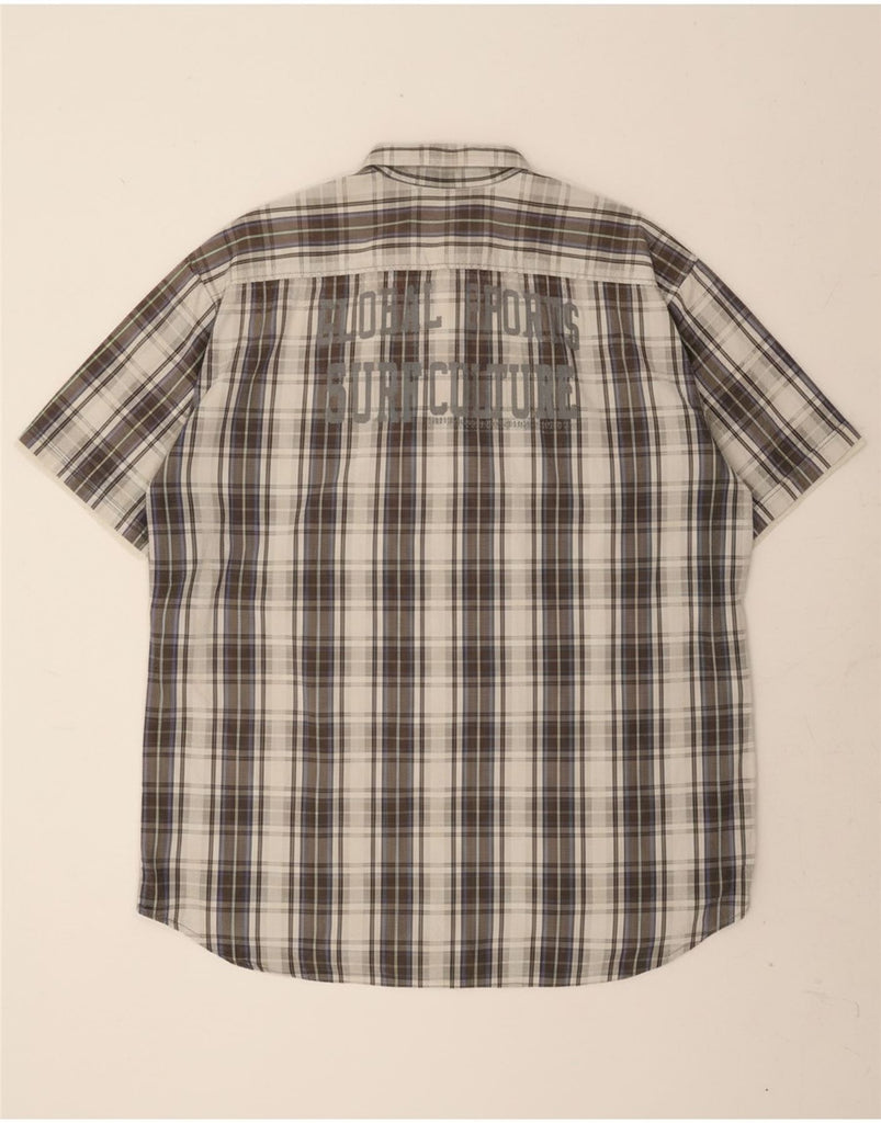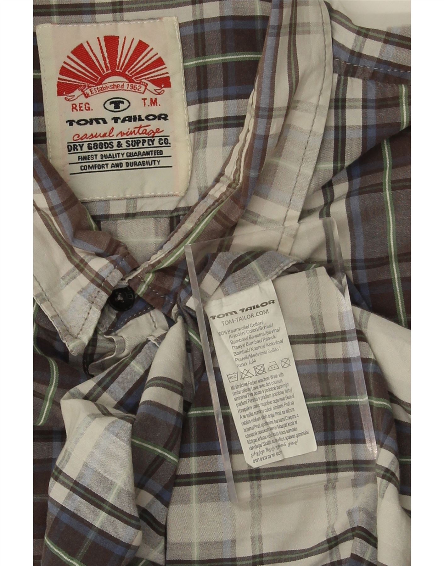 Camisa masculina estampada de manga curta TOM TAILOR 2XL algodão xadrez cinza