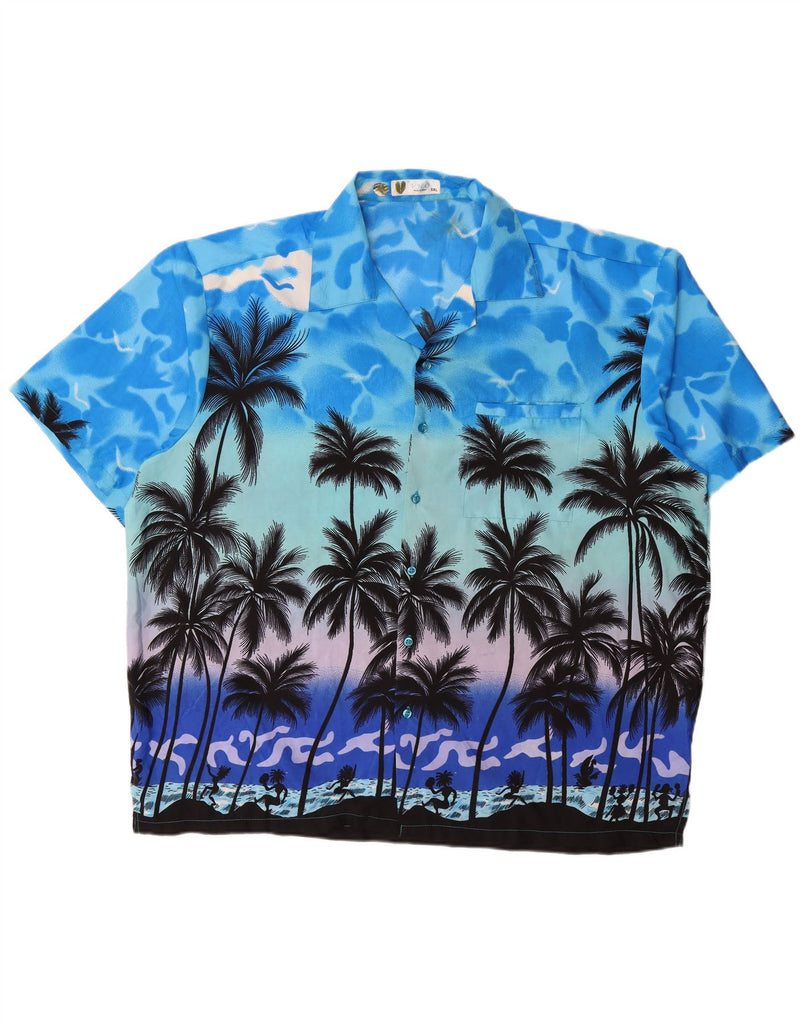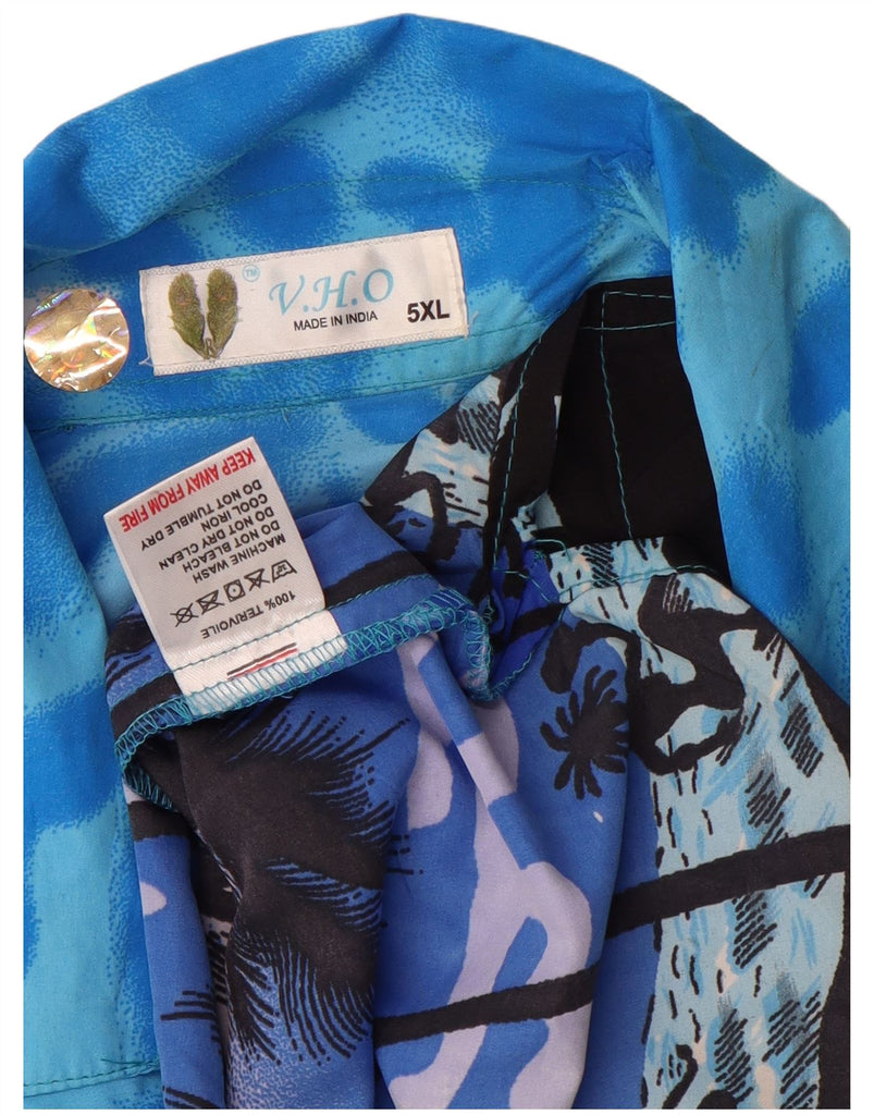 Camisa masculina havaiana de manga curta V.H.O 5XL azul floral terivoile
