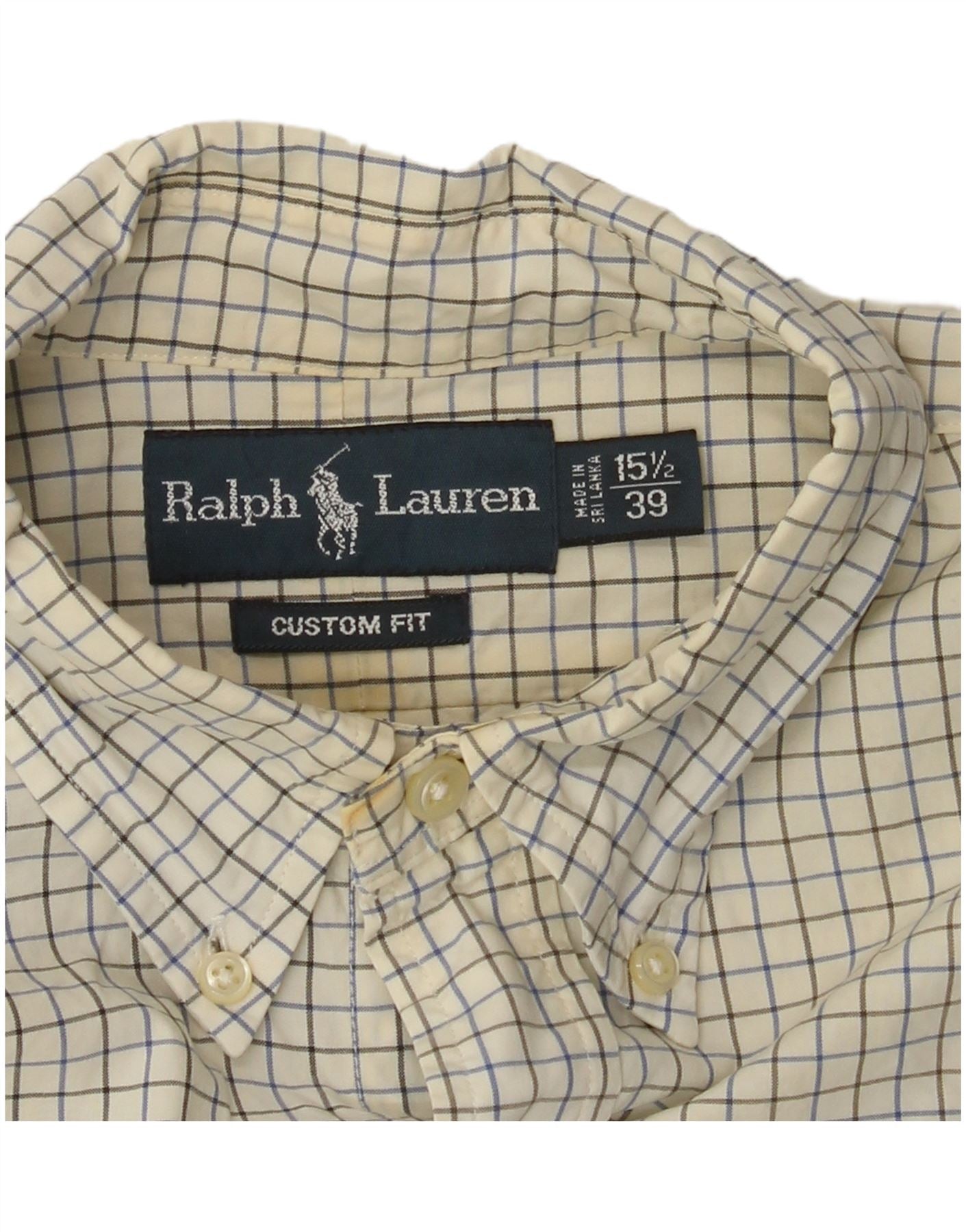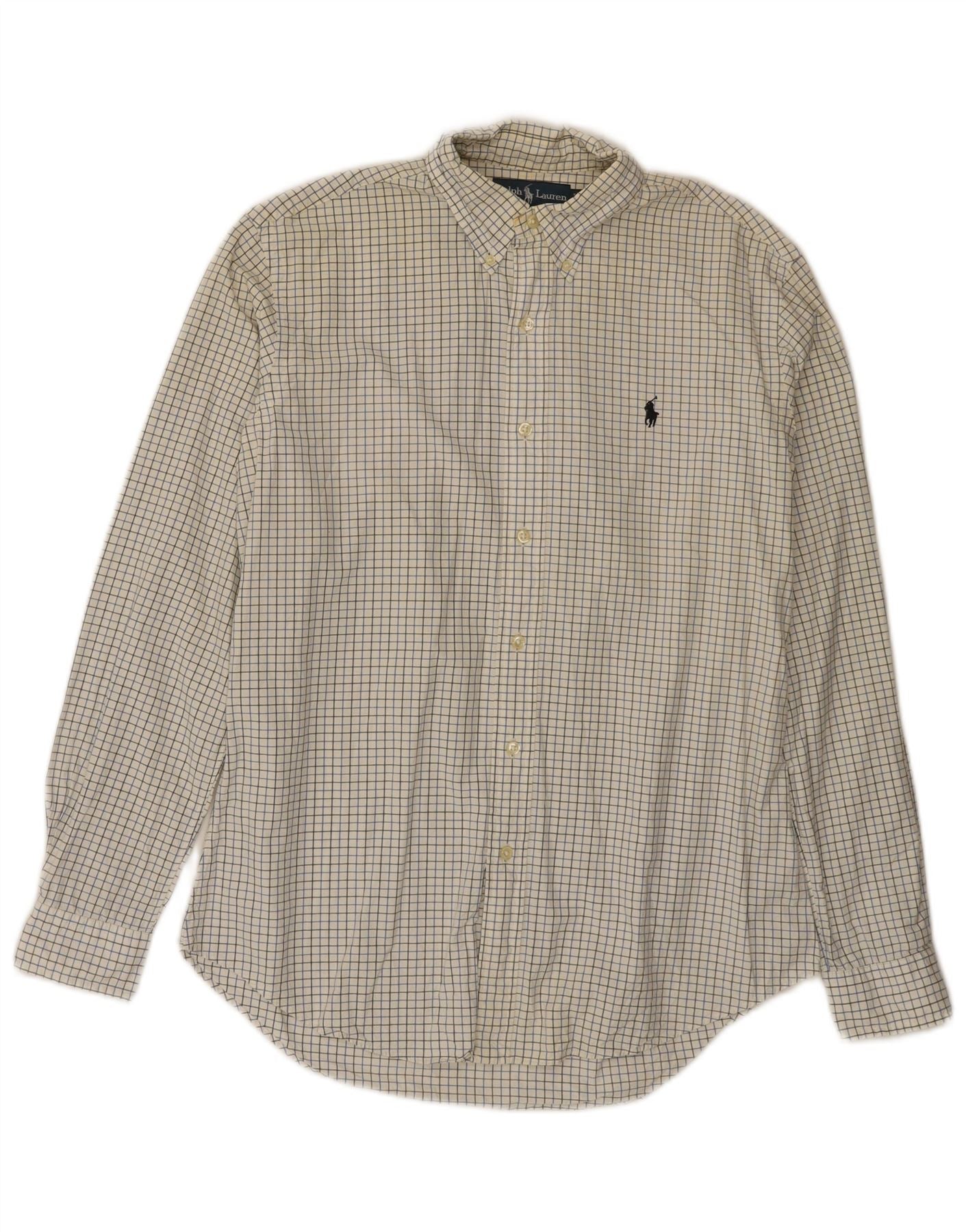 Camisa masculina RALPH LAUREN com ajuste personalizado tamanho 15 1/2 39 médio esbranquiçado xadrez