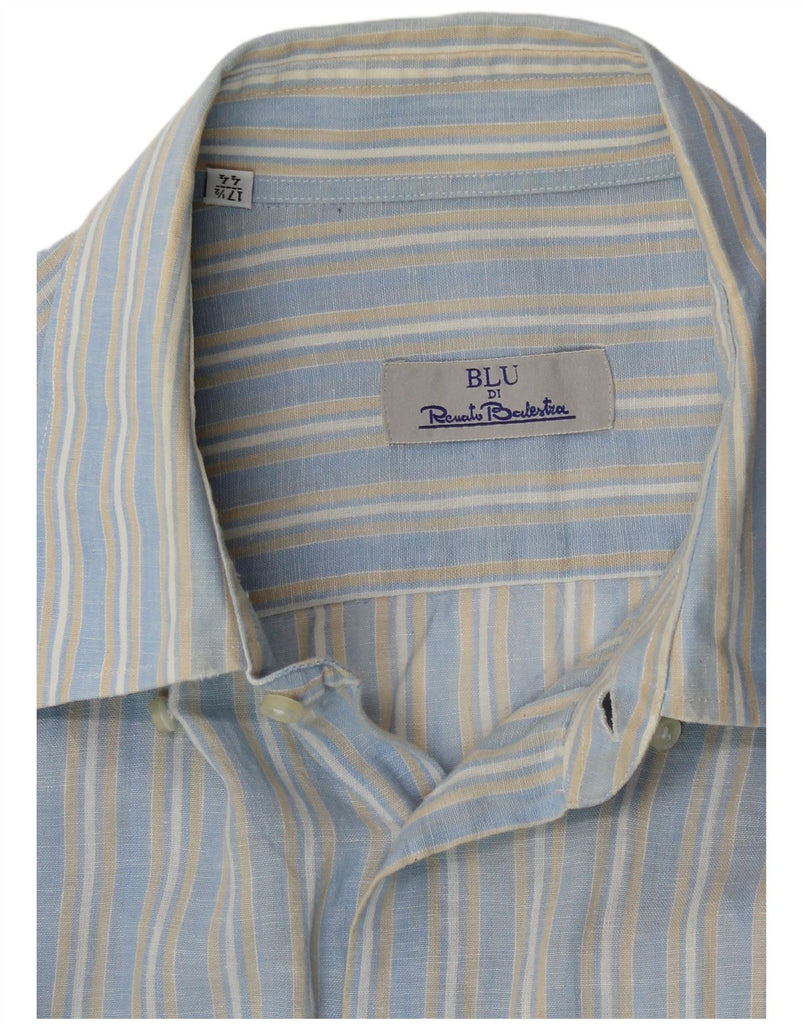 Camisa masculina RENATO BALESTRA tamanho 17 1/2 44 XL listrada azul