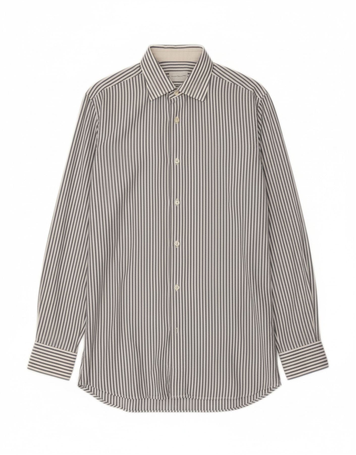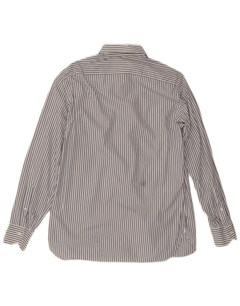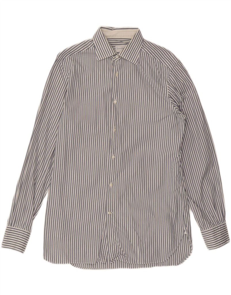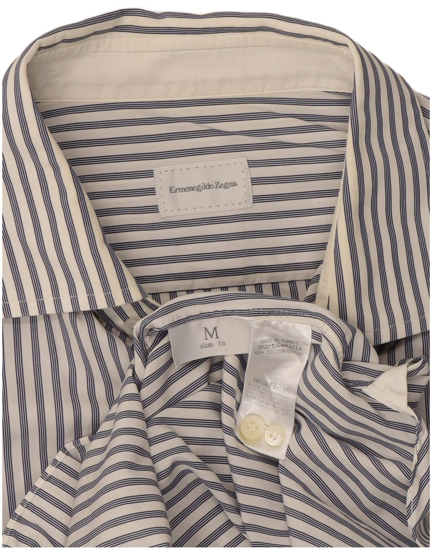 Camisa masculina slim fit ERMENEGILDO ZEGNA algodão listrado azul médio