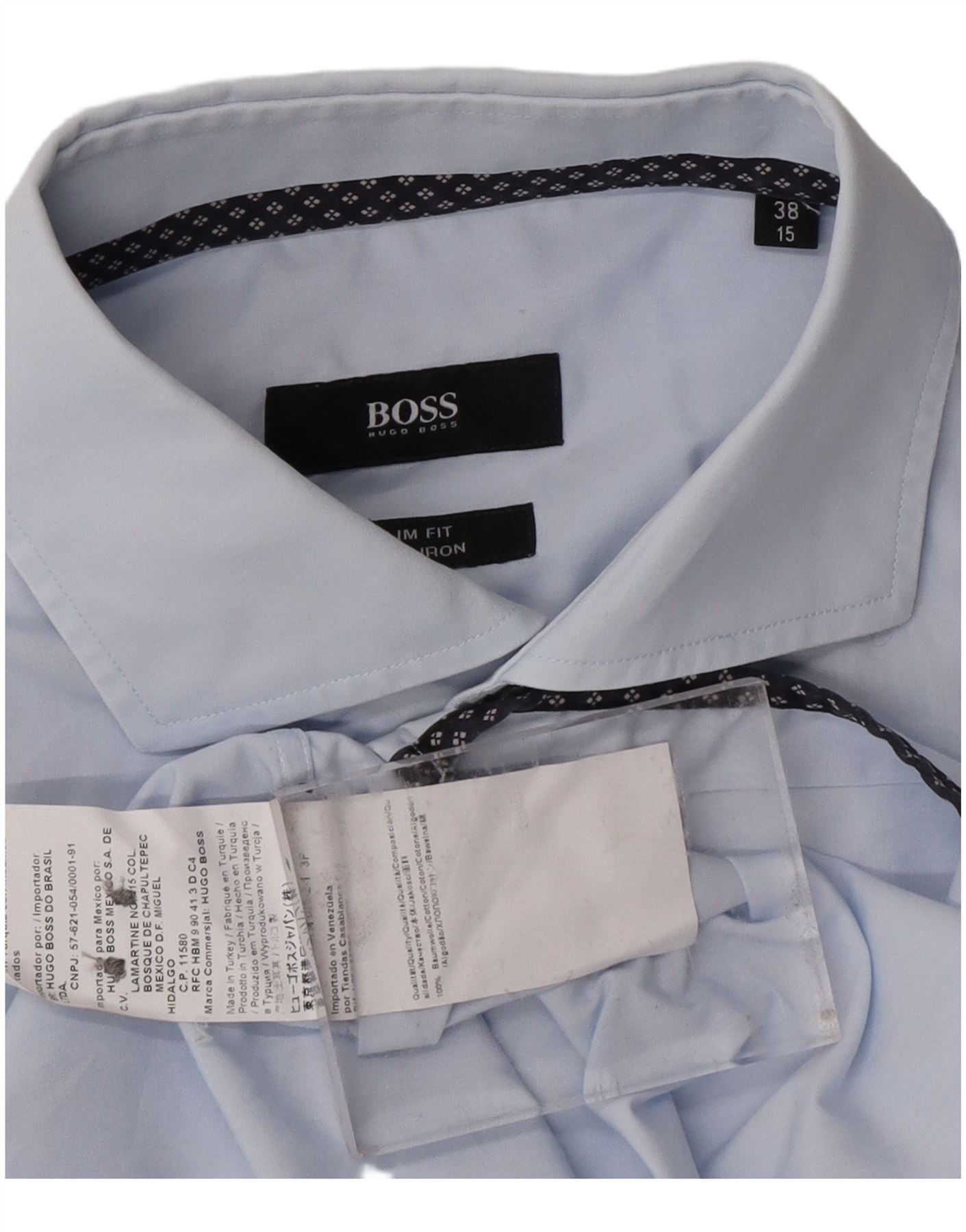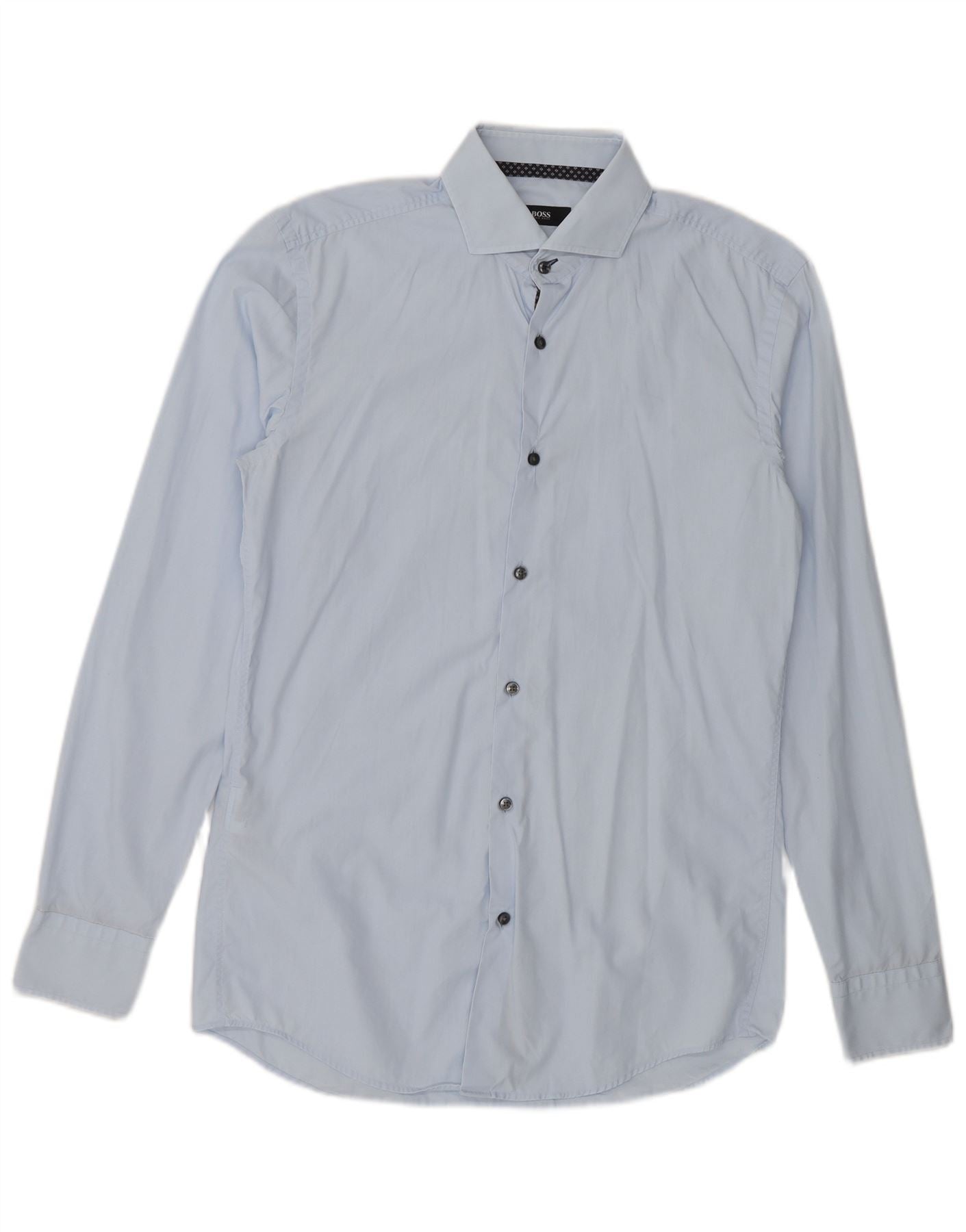 Camisa masculina slim fit HUGO BOSS tamanho 15 38 algodão azul médio