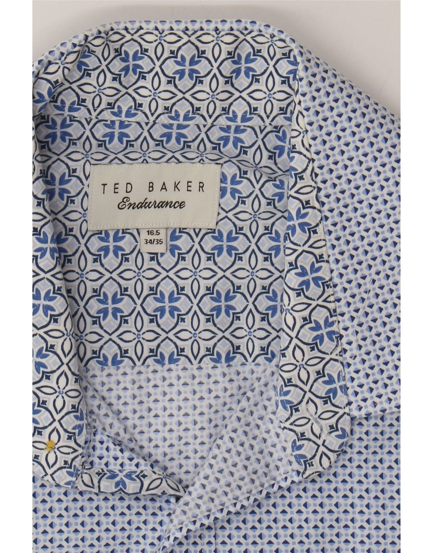 Camisa masculina TED BAKER tamanho 16,5 grande algodão geométrico azul