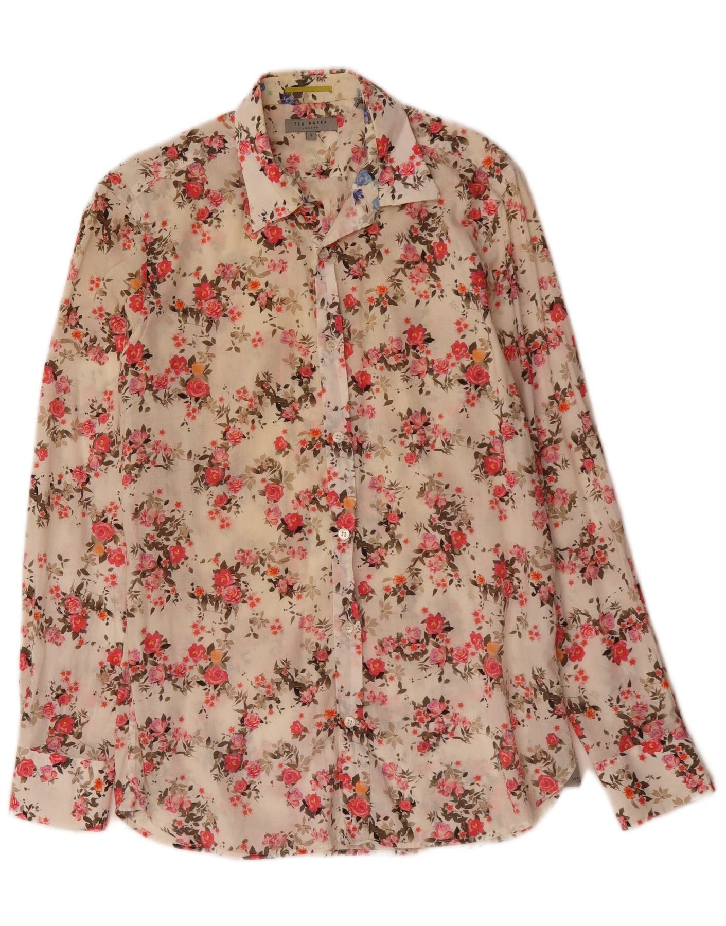 Camisa masculina TED BAKER tamanho 2 pequeno algodão floral branco