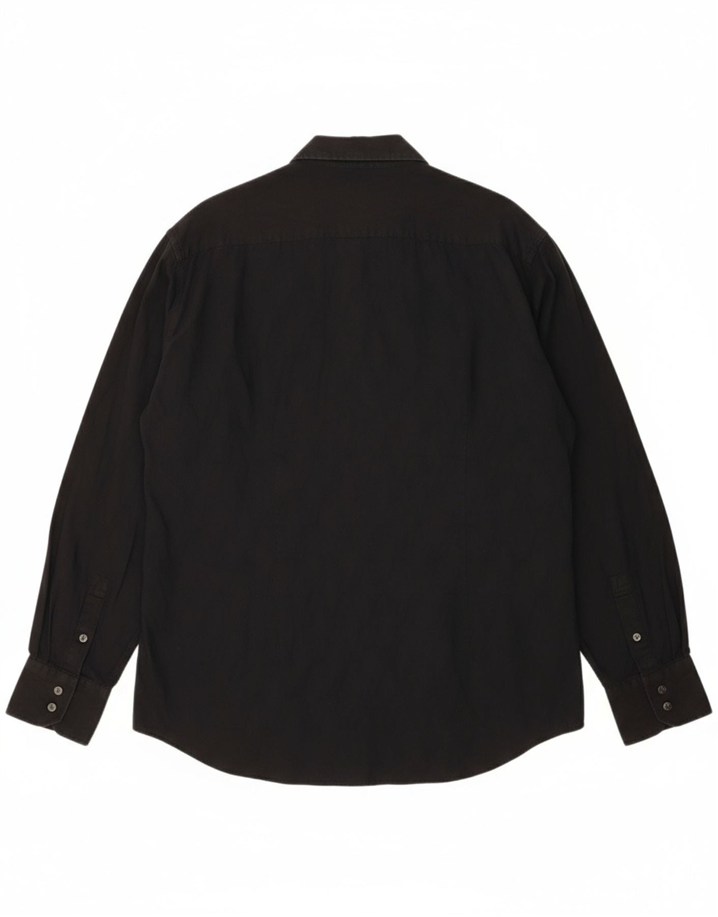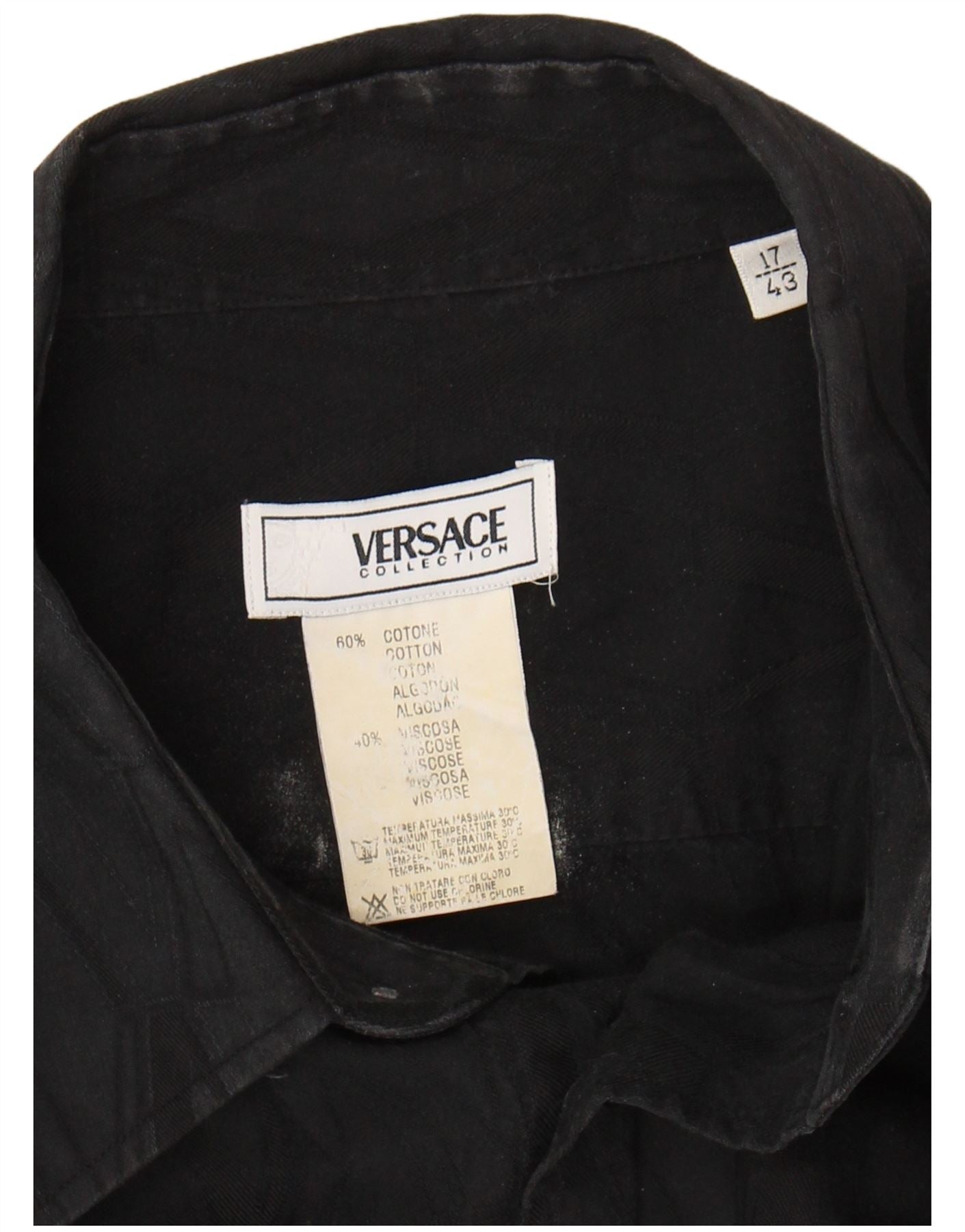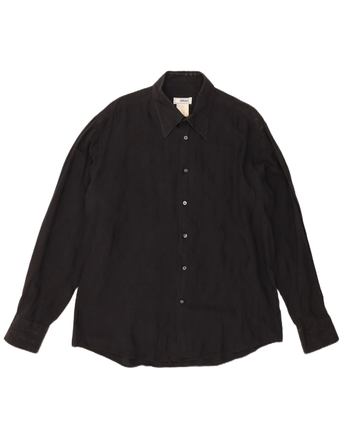 - Descrição da IA: Esta camisa masculina Versace é confeccionada em uma confortável mistura preta de algodão e viscose. O decote com gola e botões frontais completos oferecem um visual clássico e refinado. As mangas compridas terminam com punhos elegantes, realçando a silhueta estruturada. Um ajuste regular garante facilidade de movimento e apelo atemporal. Bolsos sutis acrescentam detalhes práticos a esta peça versátil.