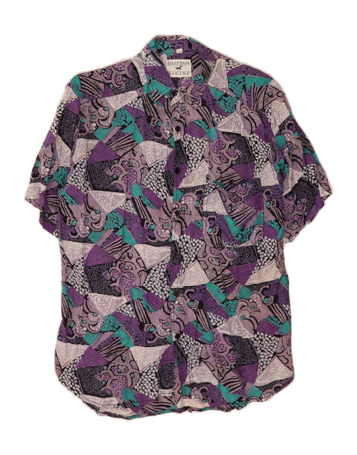 Camisa masculina VINTAGE de manga curta XL roxo geométrico rayon