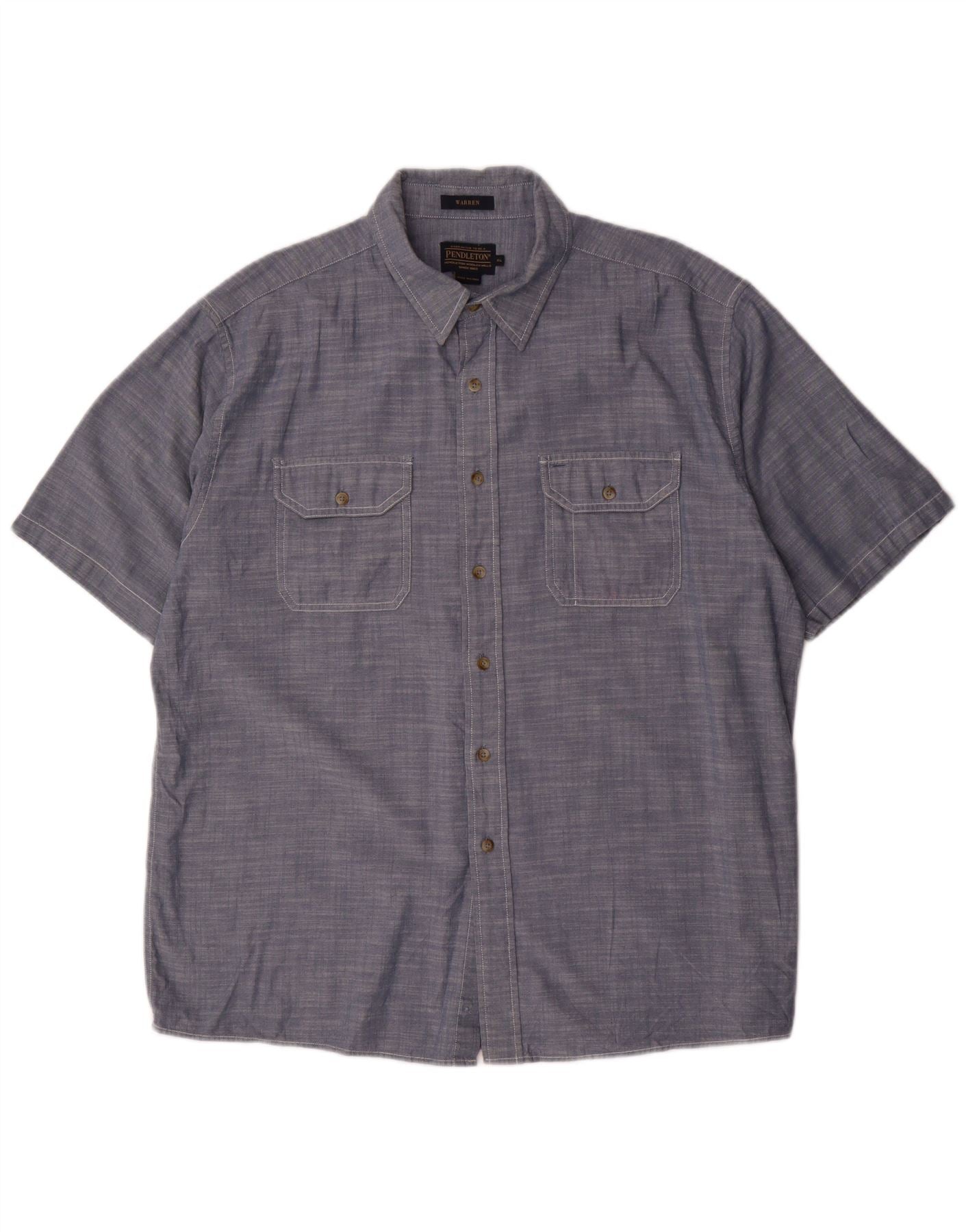 Camisa masculina Warren de manga curta PENDLETON XL azul marinho algodão manchado