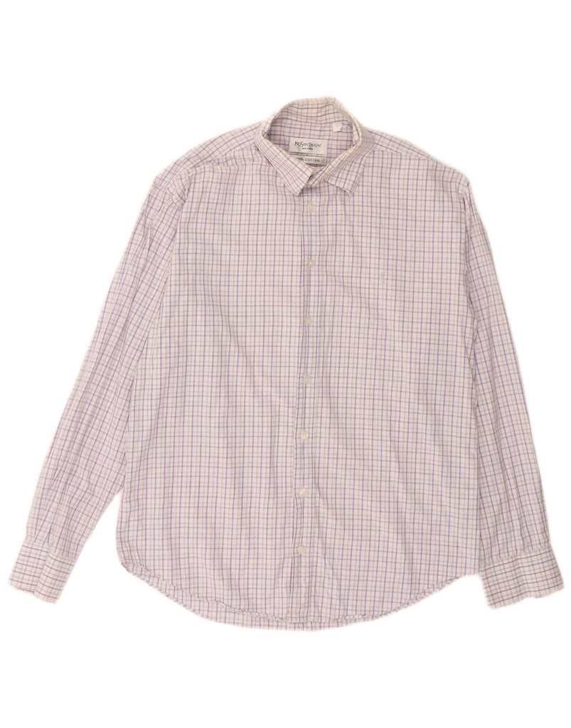 Camisa masculina YVES SAINT LAURENT de algodão xadrez roxo médio