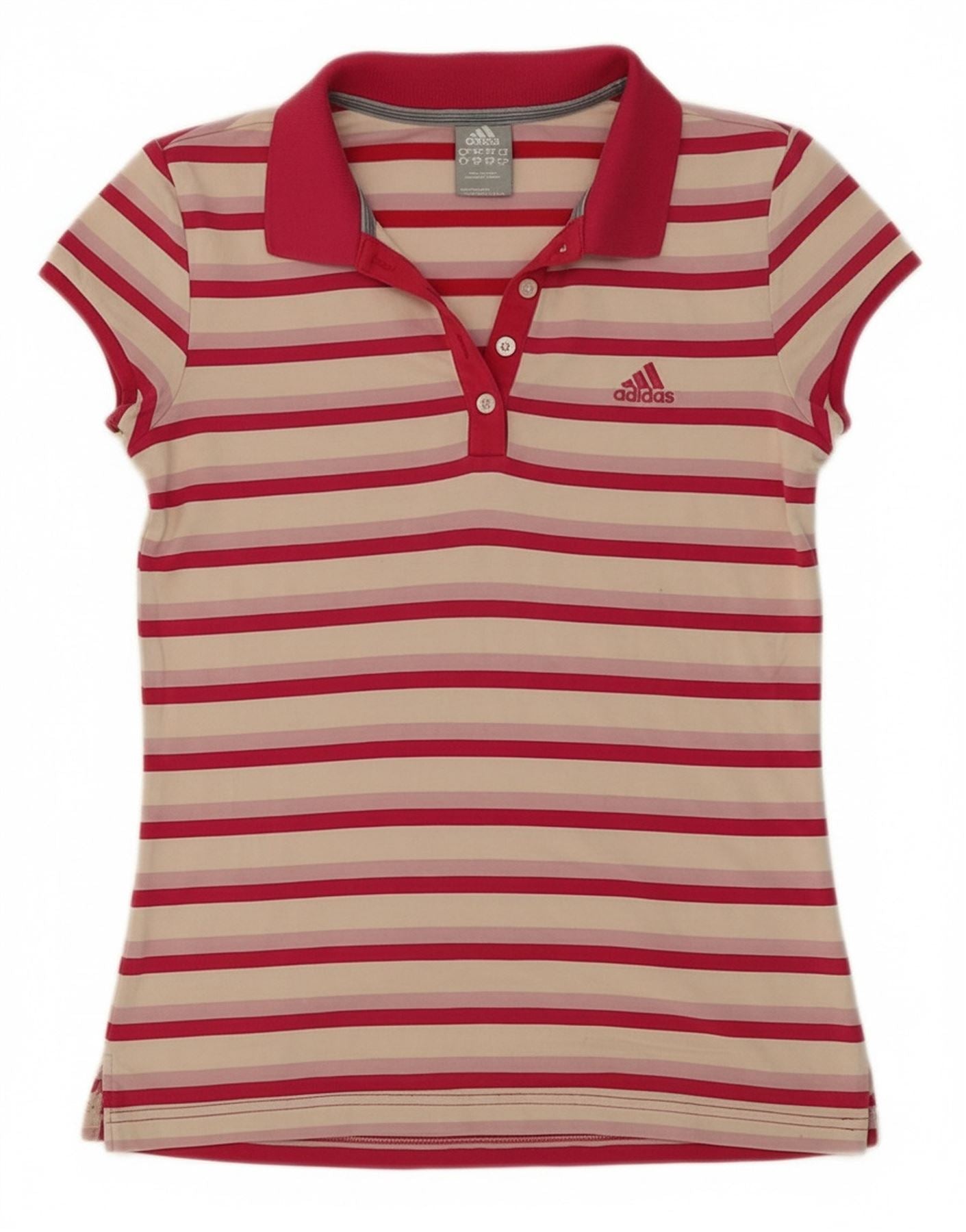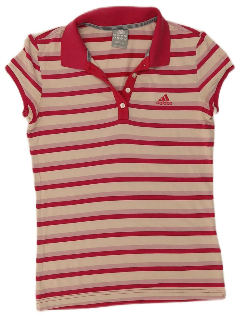 Camisa polo feminina adidas UK 10 pequena listrada multicolorida
