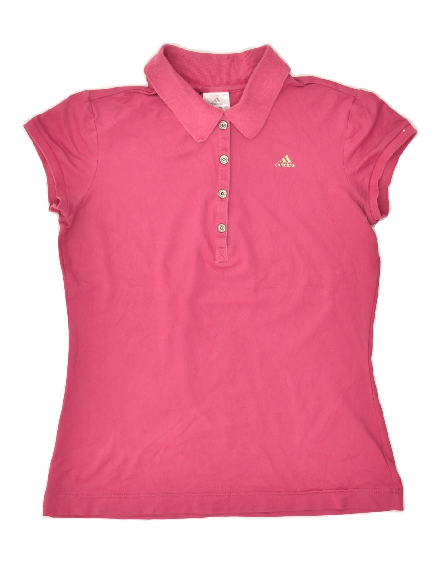 Camisa polo feminina adidas UK 12 algodão rosa médio