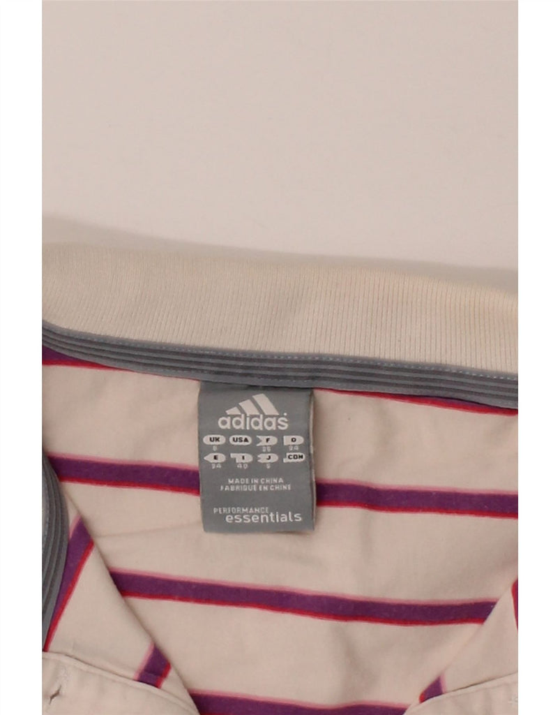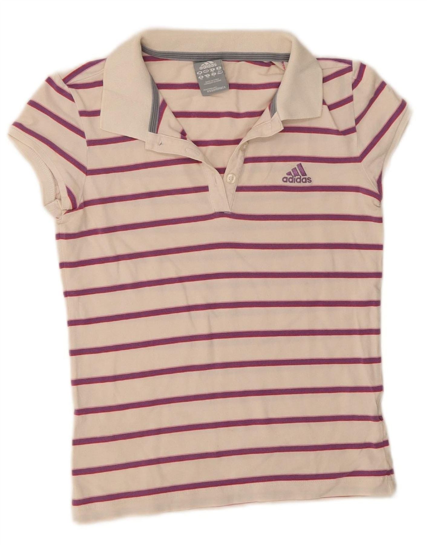 - Descrição da IA: Esta camiseta feminina Adidas é confeccionada em jersey macio esbranquiçado, oferecendo uma sensação confortável e respirável. Possui decote com gola e mangas curtas, conferindo uma silhueta clássica. O fechamento por botão proporciona um acabamento elegante ao design. Um padrão listrado sutil adiciona interesse visual. O icônico logotipo da Adidas fornece um destaque reconhecível, completando este top de ajuste regular.
