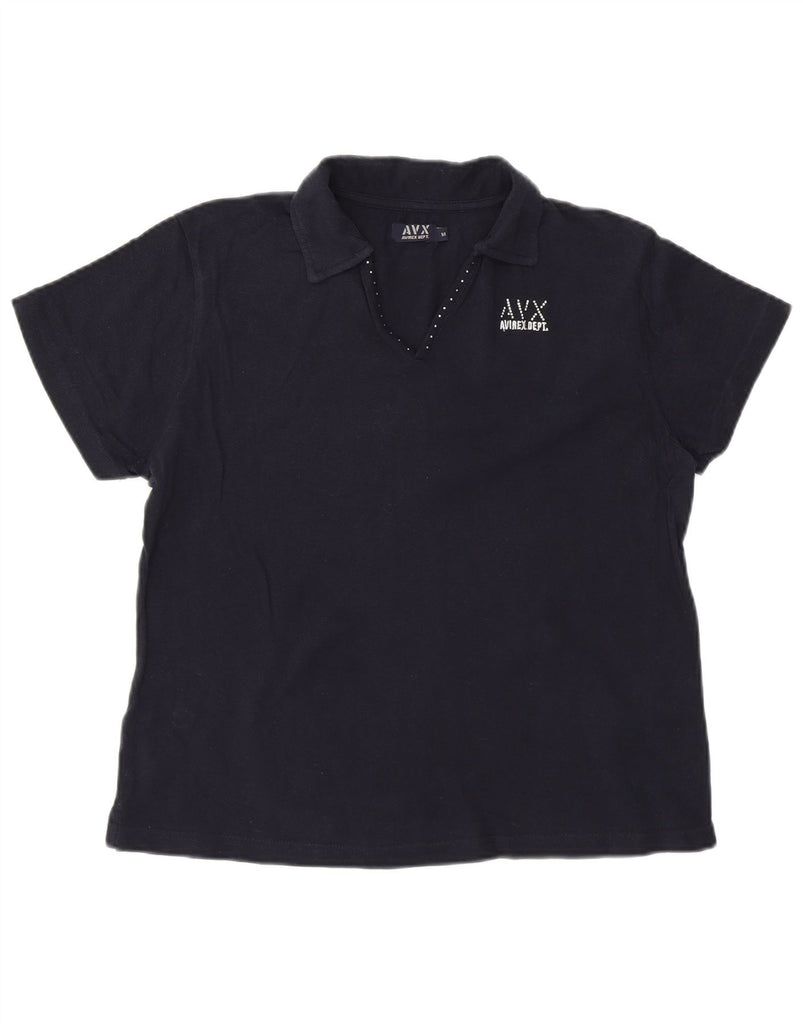 Camisa polo feminina Avirex Reino Unido 14 algodão azul marinho médio