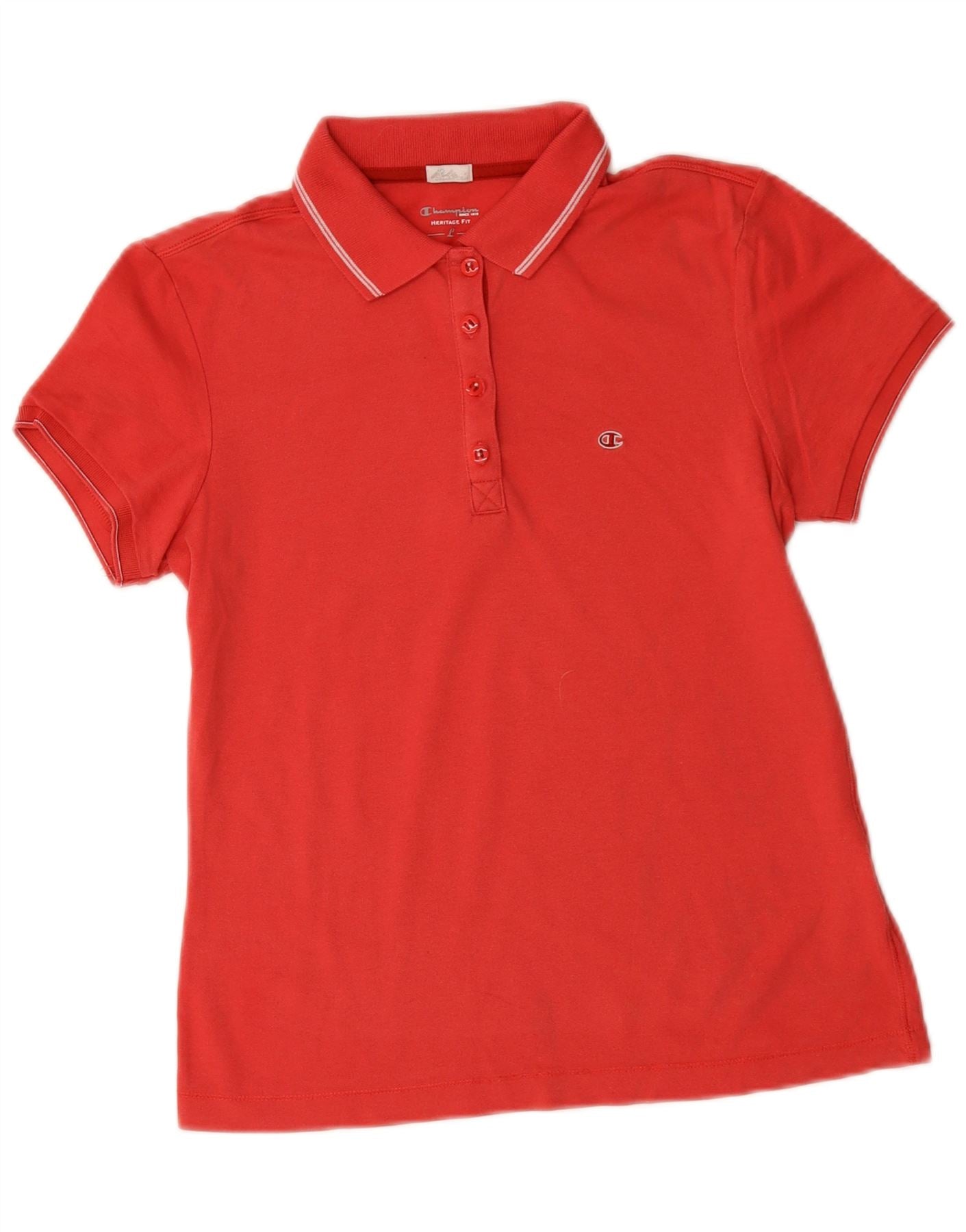 Camisa polo feminina CHAMPION Heritage Fit Reino Unido 14 grande algodão vermelho