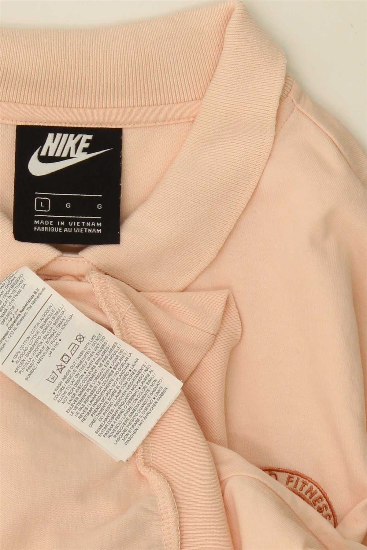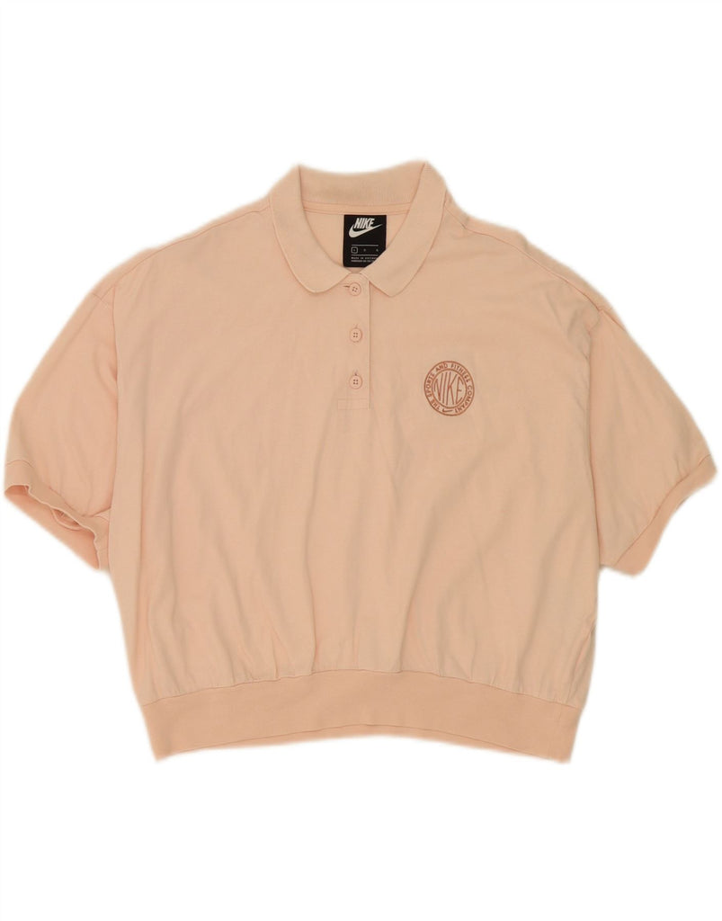 - Descrição da IA: Esta camiseta gráfica feminina da Nike é confeccionada em malha de algodão rosa macio para proporcionar uma sensação confortável. Possui um elegante decote com gola e mangas curtas. O corte descontraído e curto oferece uma silhueta moderna. Um logotipo gráfico proeminente adiciona um toque de assinatura. Este top é perfeito para fitness e uso casual.
