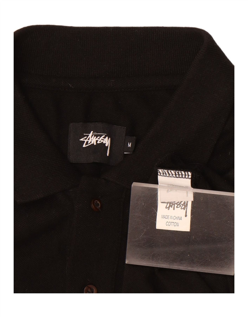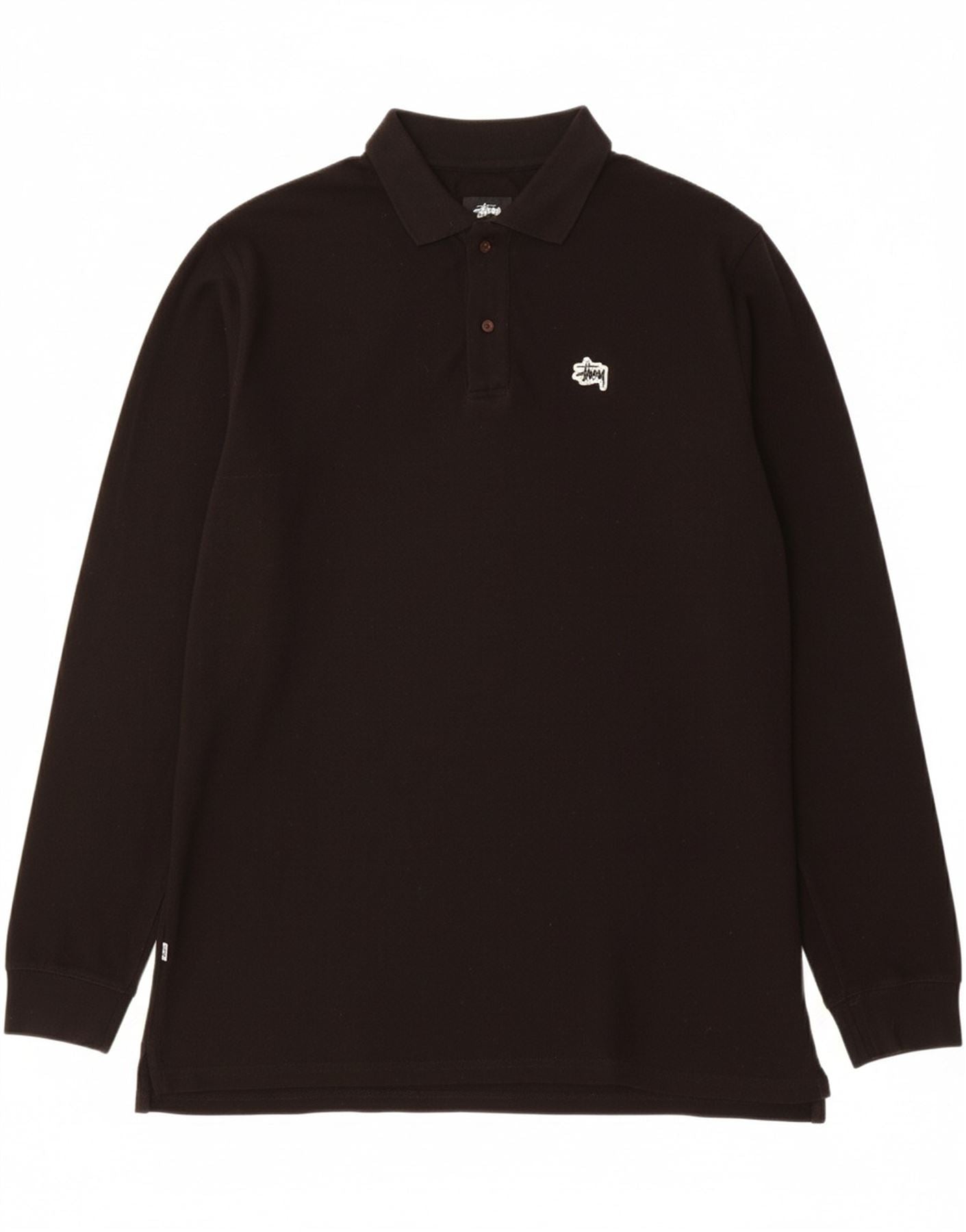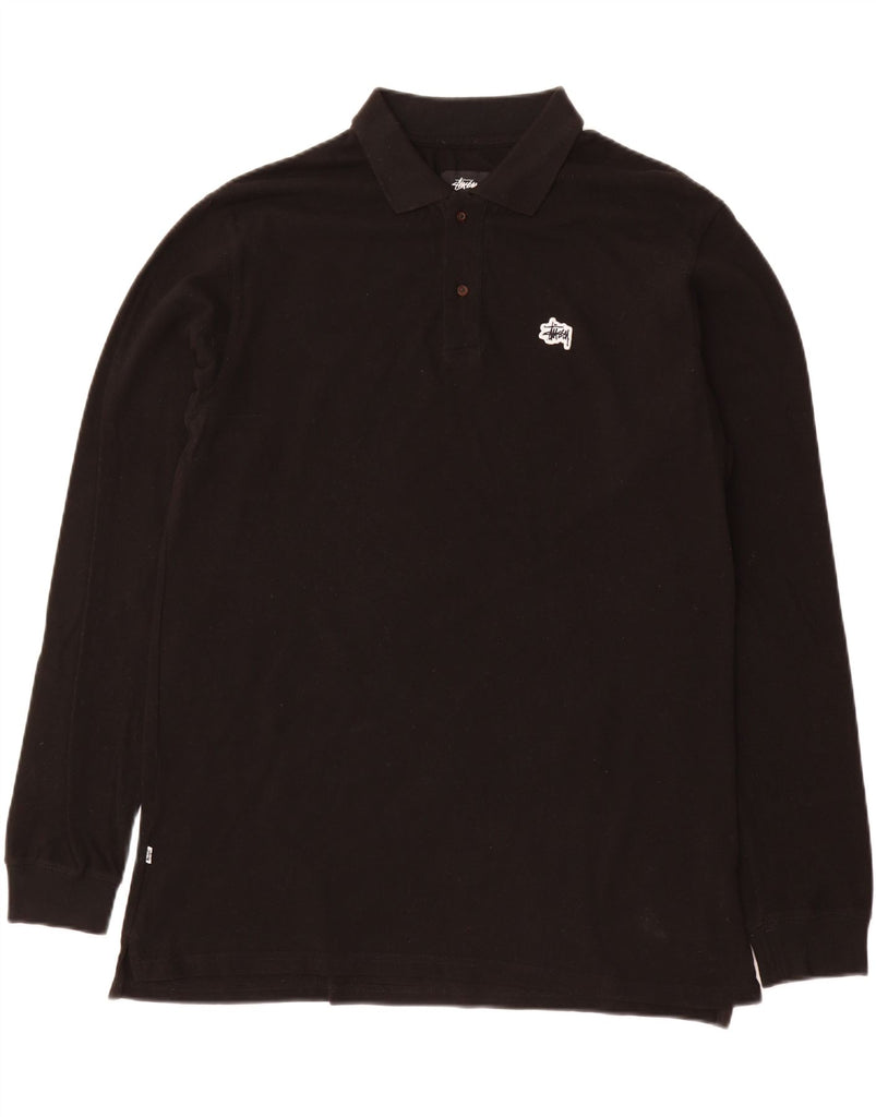 Camisa polo masculina de manga comprida STUSSY de algodão preto médio