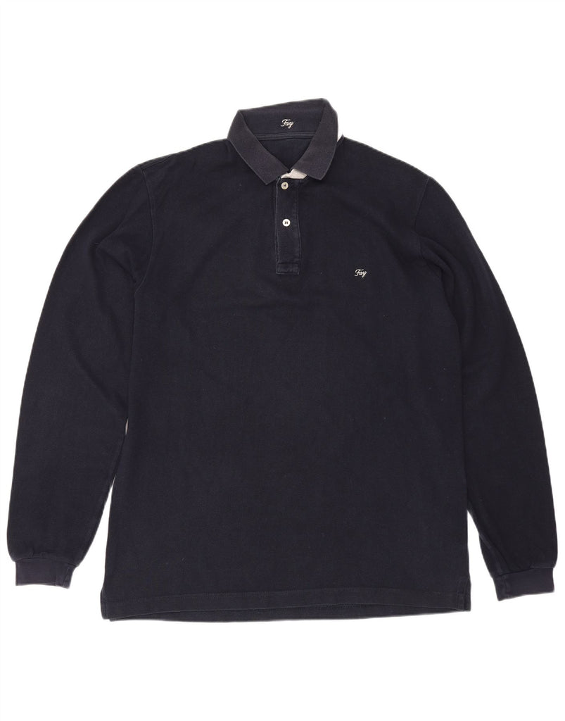 Camisa polo masculina de rugby de manga comprida alta FAY grande algodão azul marinho