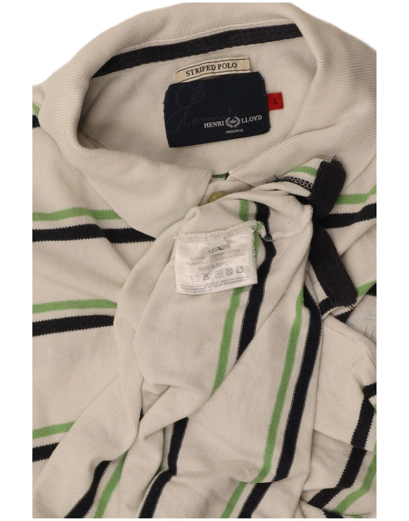 Camisa polo masculina HENRI LLOYD grande algodão listrado branco