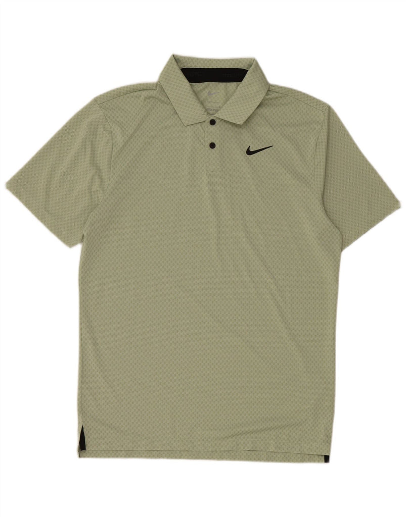 Camisa polo masculina NIKE Dri Fit pequena verde manchada de poliéster