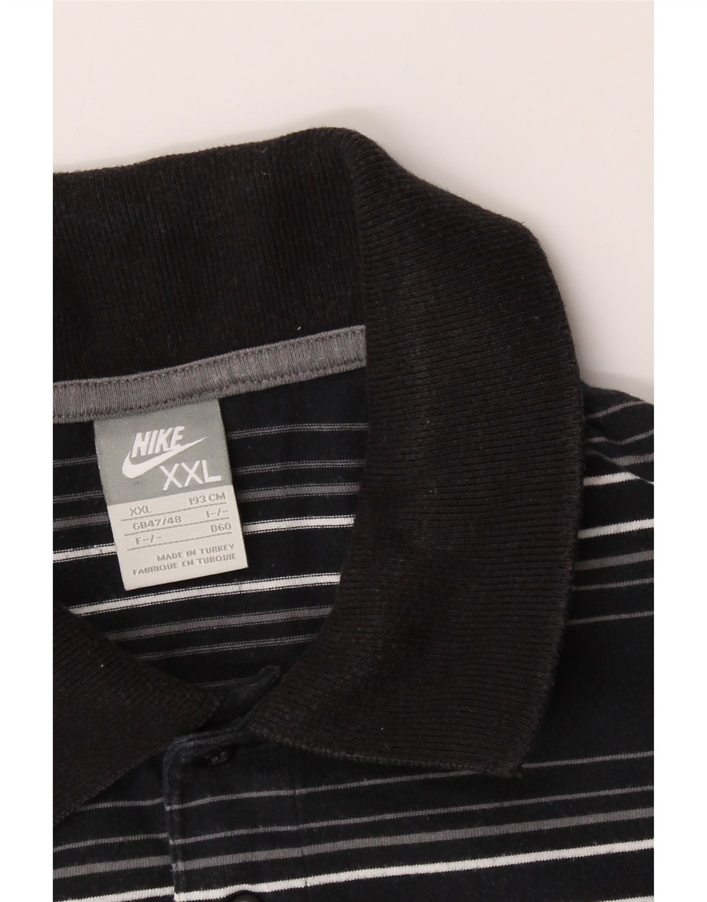 - Descrição da IA: Esta camiseta Nike usada é uma blusa esportiva estilosa para homens. Confeccionada em confortável tecido jersey preto, possui decote com gola e mangas curtas. O ajuste regular garante uma sensação relaxada. Esta camiseta XXL apresenta um padrão listrado e design gráfico. Detalhes adicionais incluem fecho de botão, logotipo e bolsos. Em excelente estado, esta camiseta com gola é fabricada na Turquia.