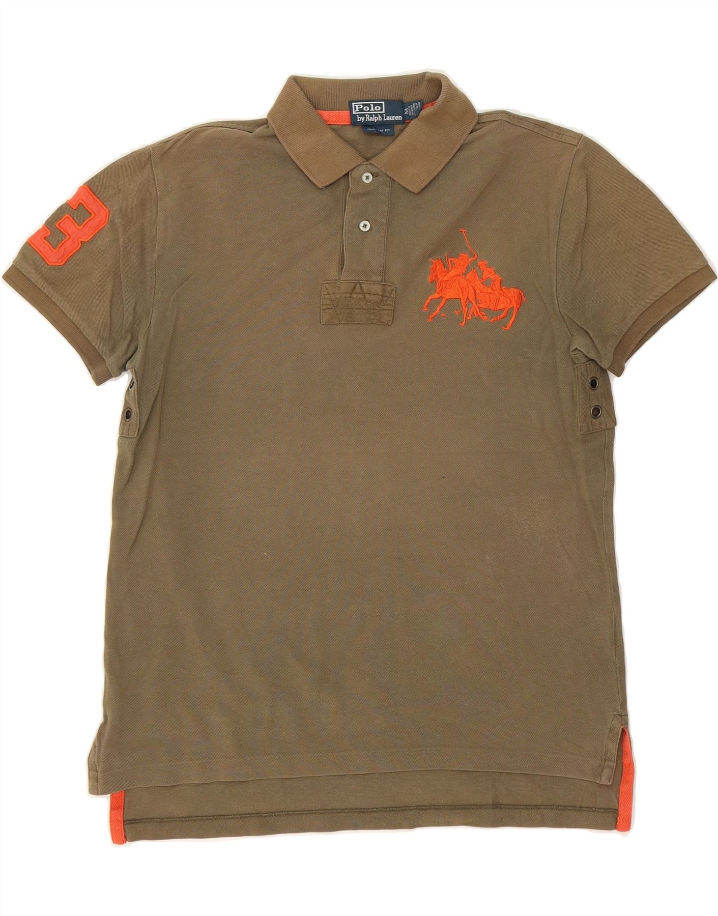 Camisa polo masculina RALPH LAUREN de ajuste personalizado de algodão marrom médio