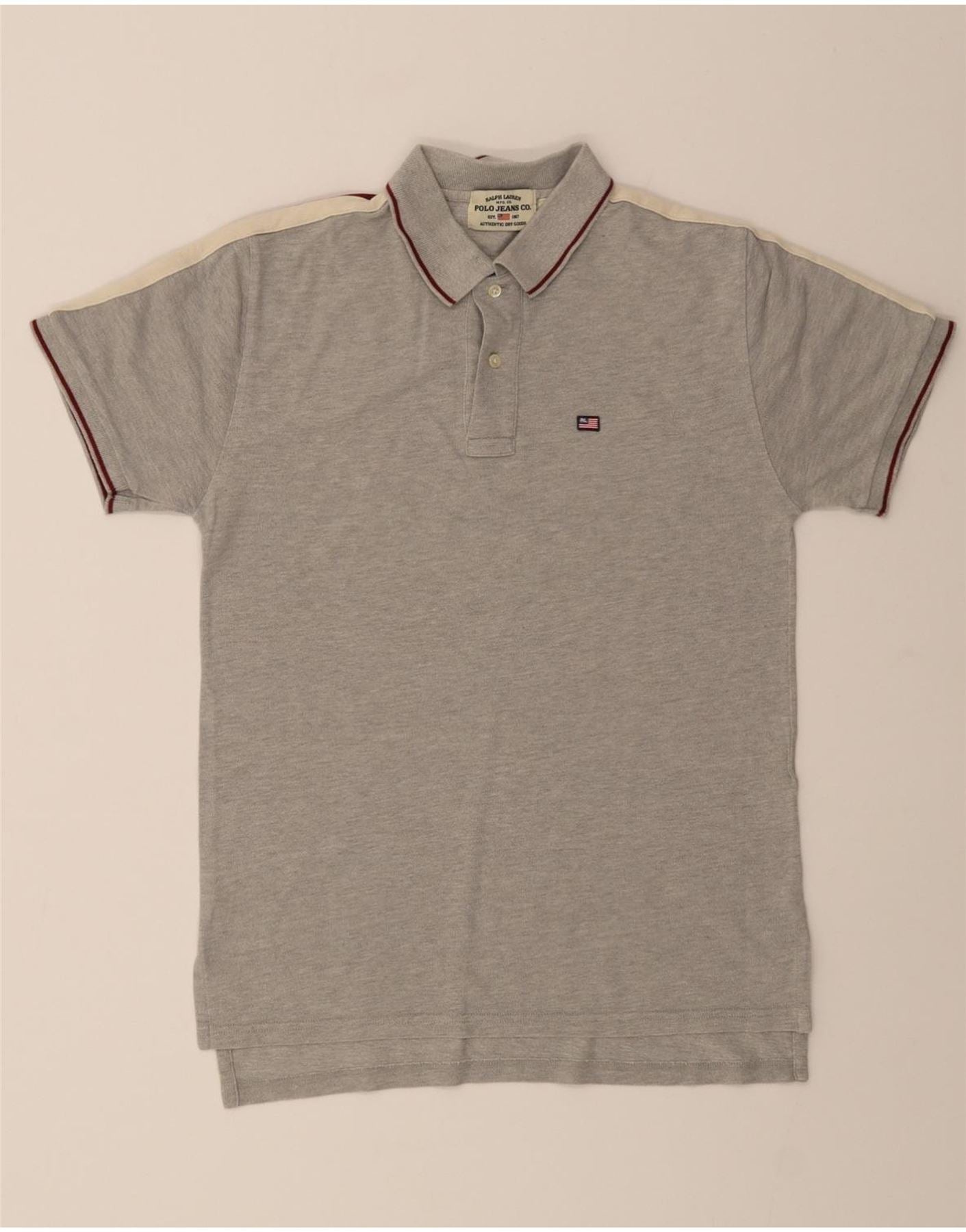 Camisa polo masculina RALPH LAUREN pequena cinza colorblock algodão