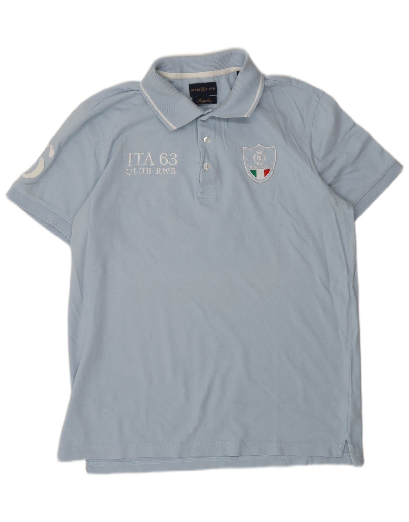 Camisa polo masculina regular gráfica HENRI LLOYD algodão azul médio