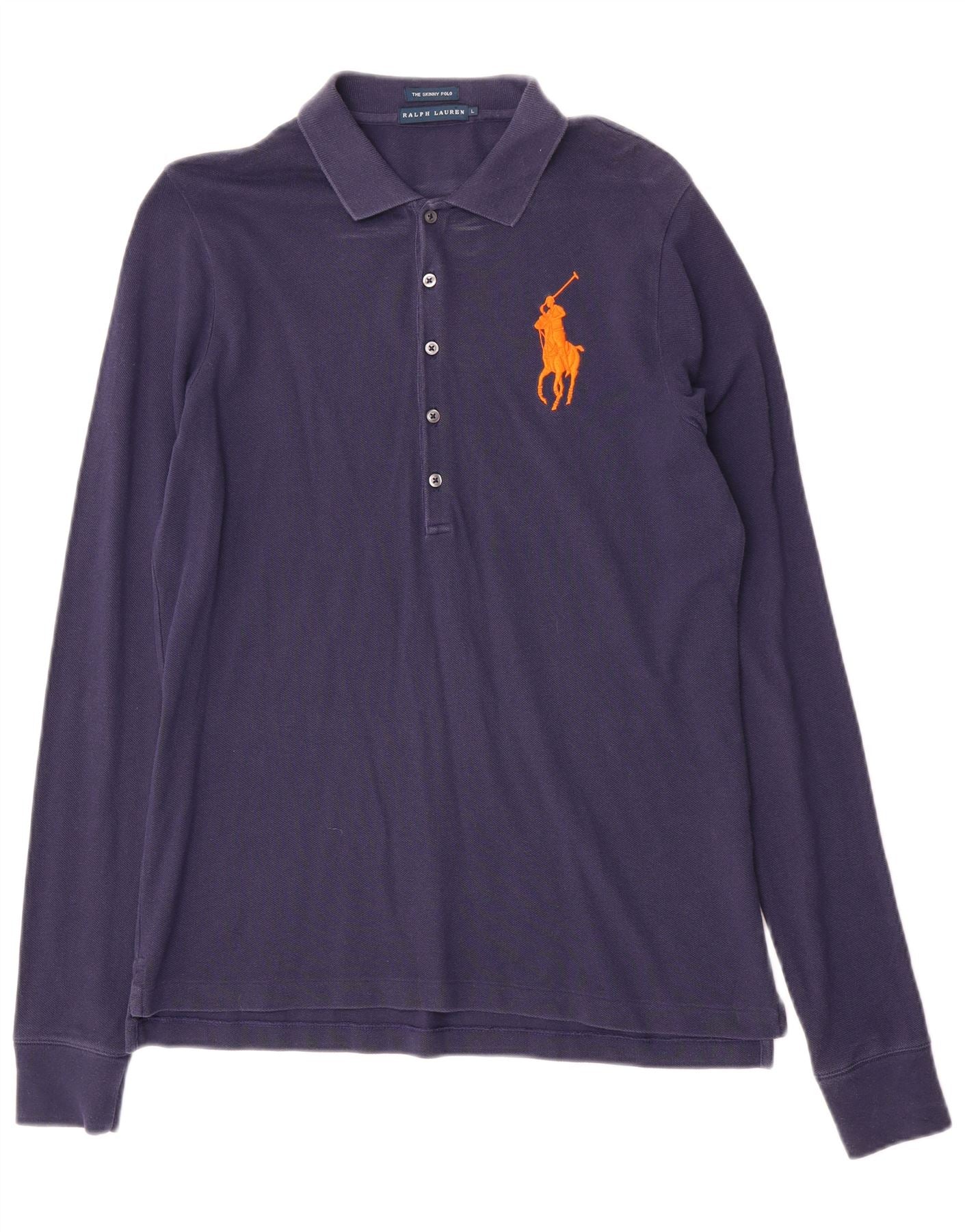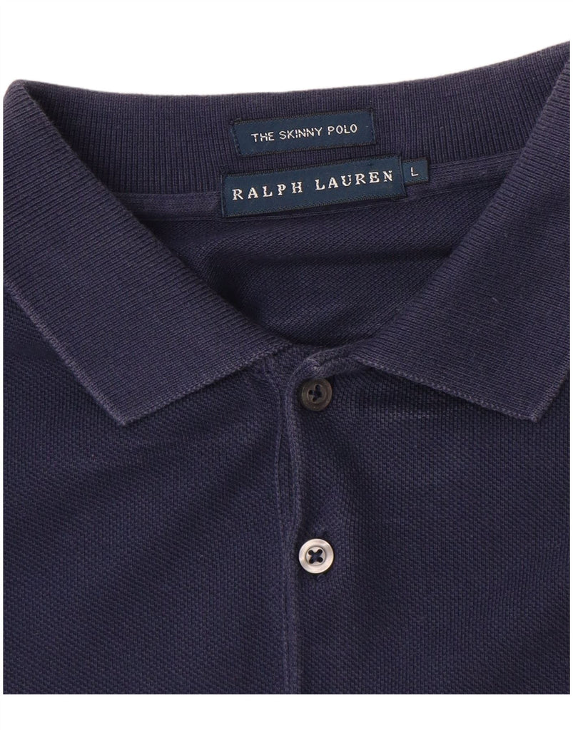 Camisa polo masculina skinny de manga comprida RALPH LAUREN grande azul marinho