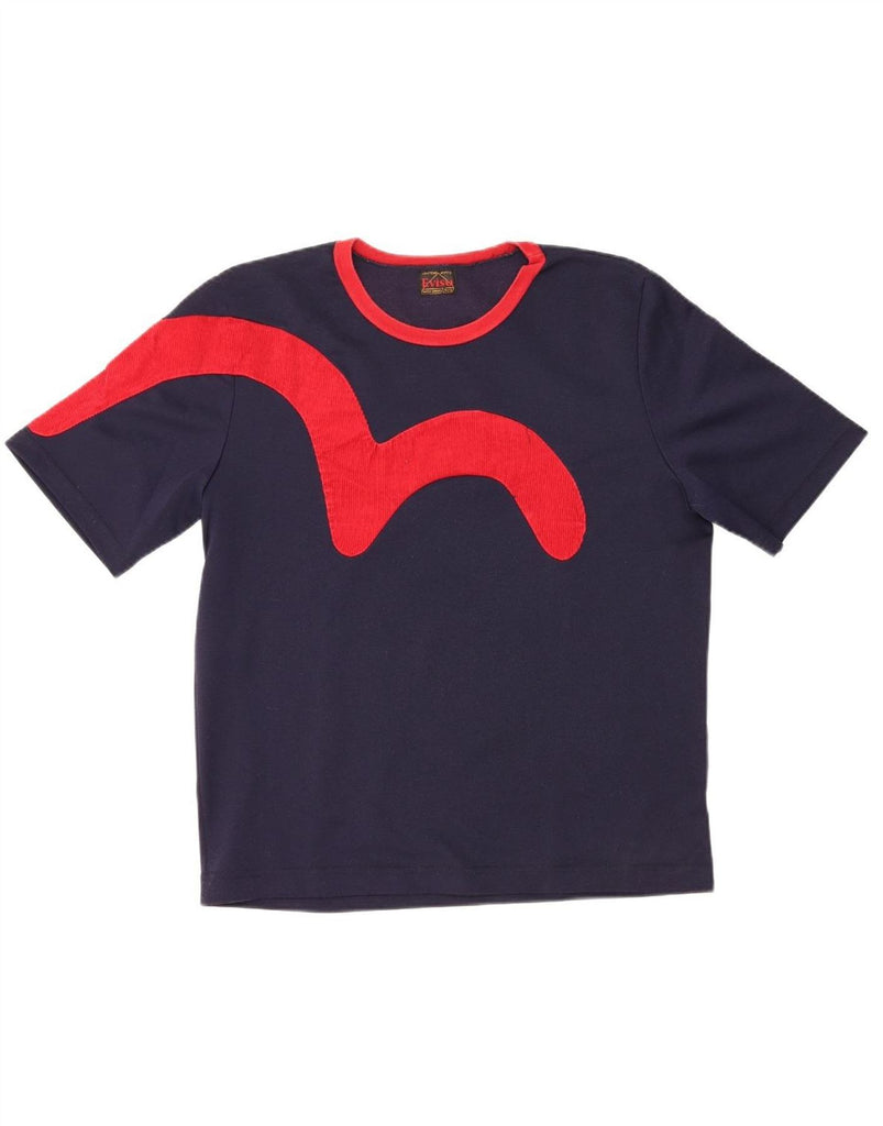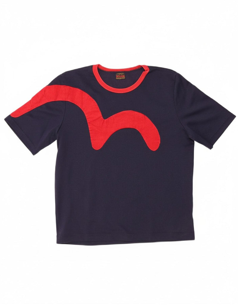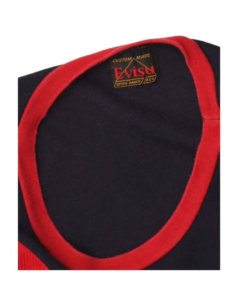 Camiseta feminina EVISU UK 14 poliéster colorblock azul marinho médio