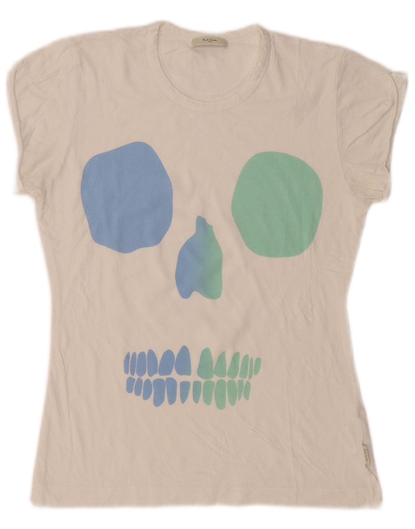 Camiseta feminina gráfica PAUL SMITH Reino Unido 10 algodão branco pequeno