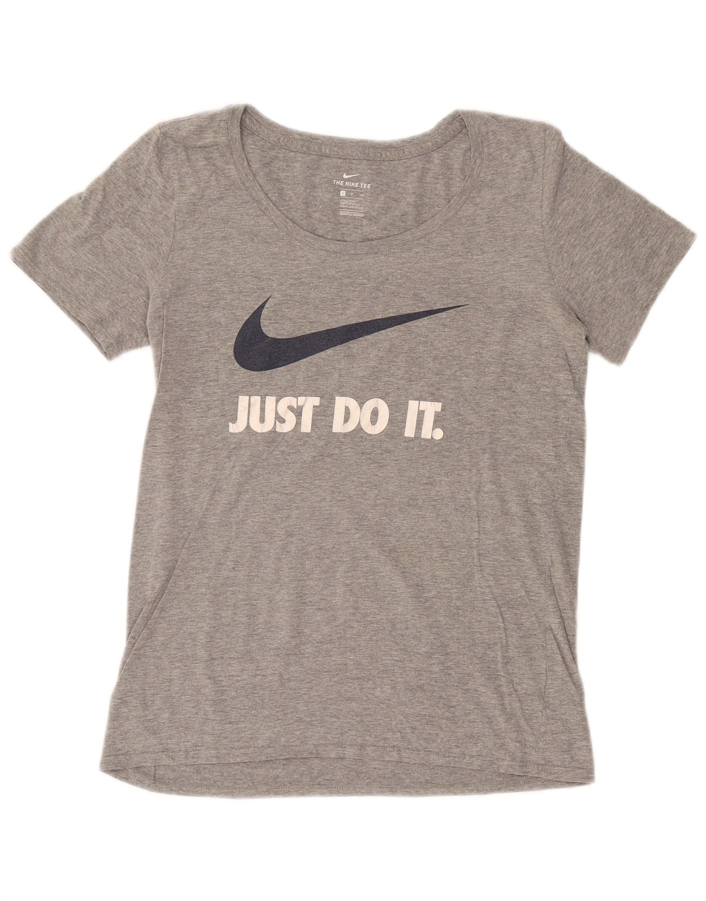 Camiseta feminina NIKE com corte atlético gráfico UK 10 pequeno algodão cinza