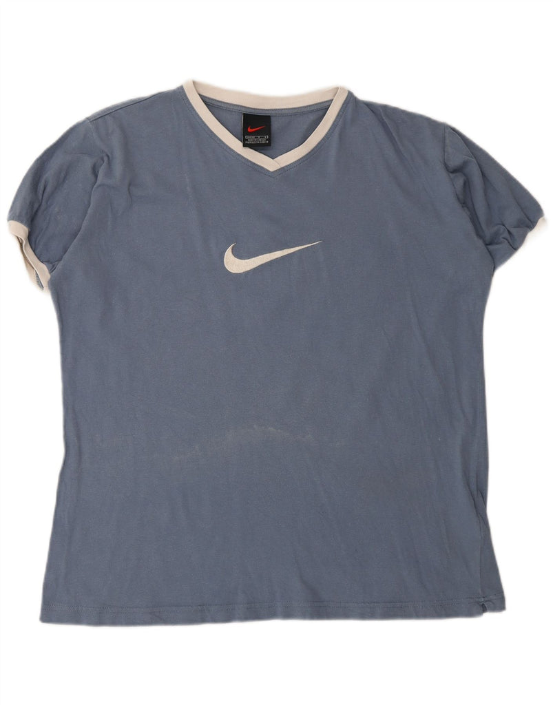 Camiseta feminina NIKE com estampa gráfica EUA 12/14 grande algodão azul marinho