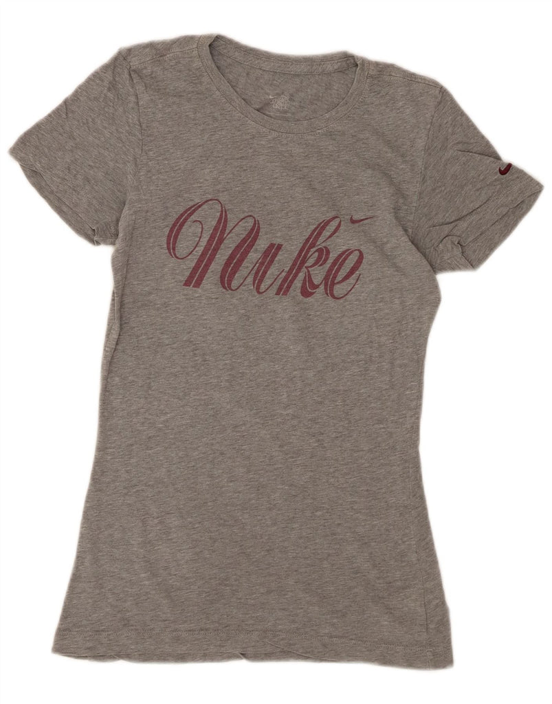 Camiseta feminina NIKE com estampa gráfica UK 10 pequena cinza algodão