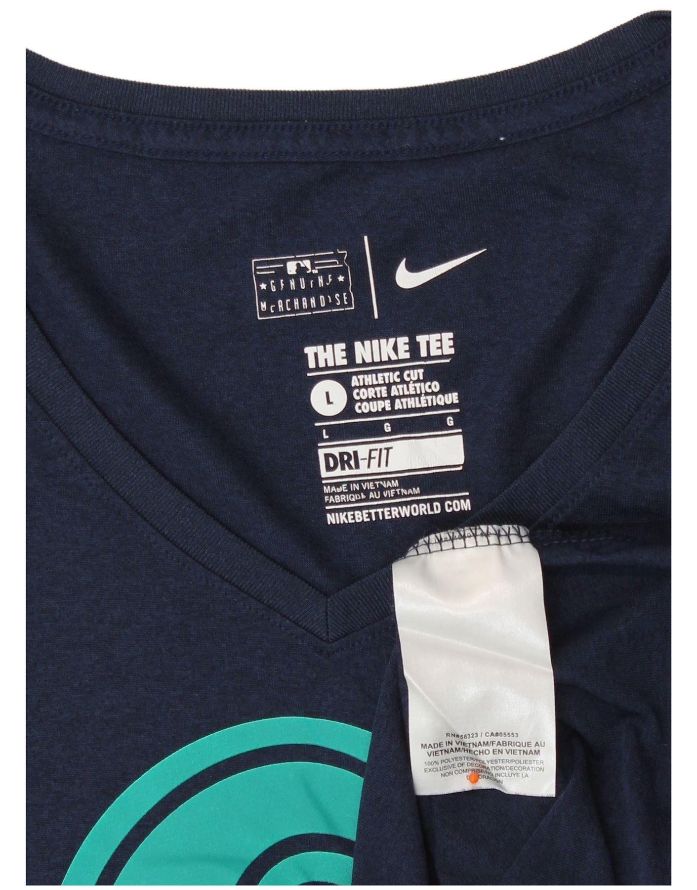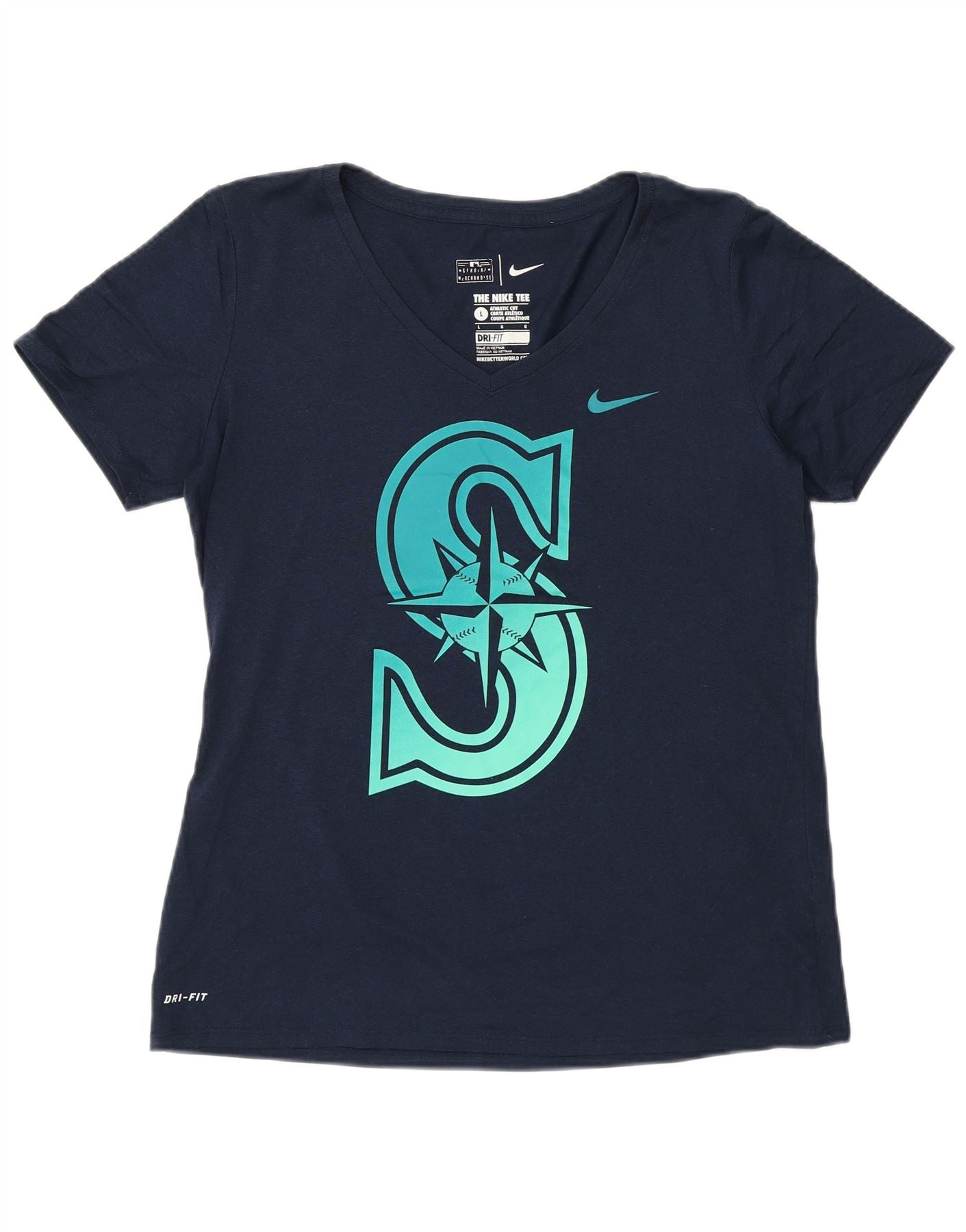 Camiseta feminina NIKE com estampa gráfica UK 14 grande poliéster azul marinho