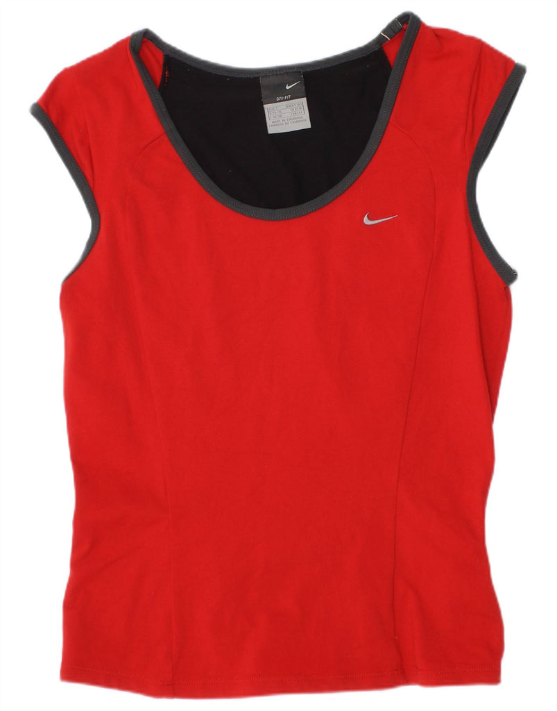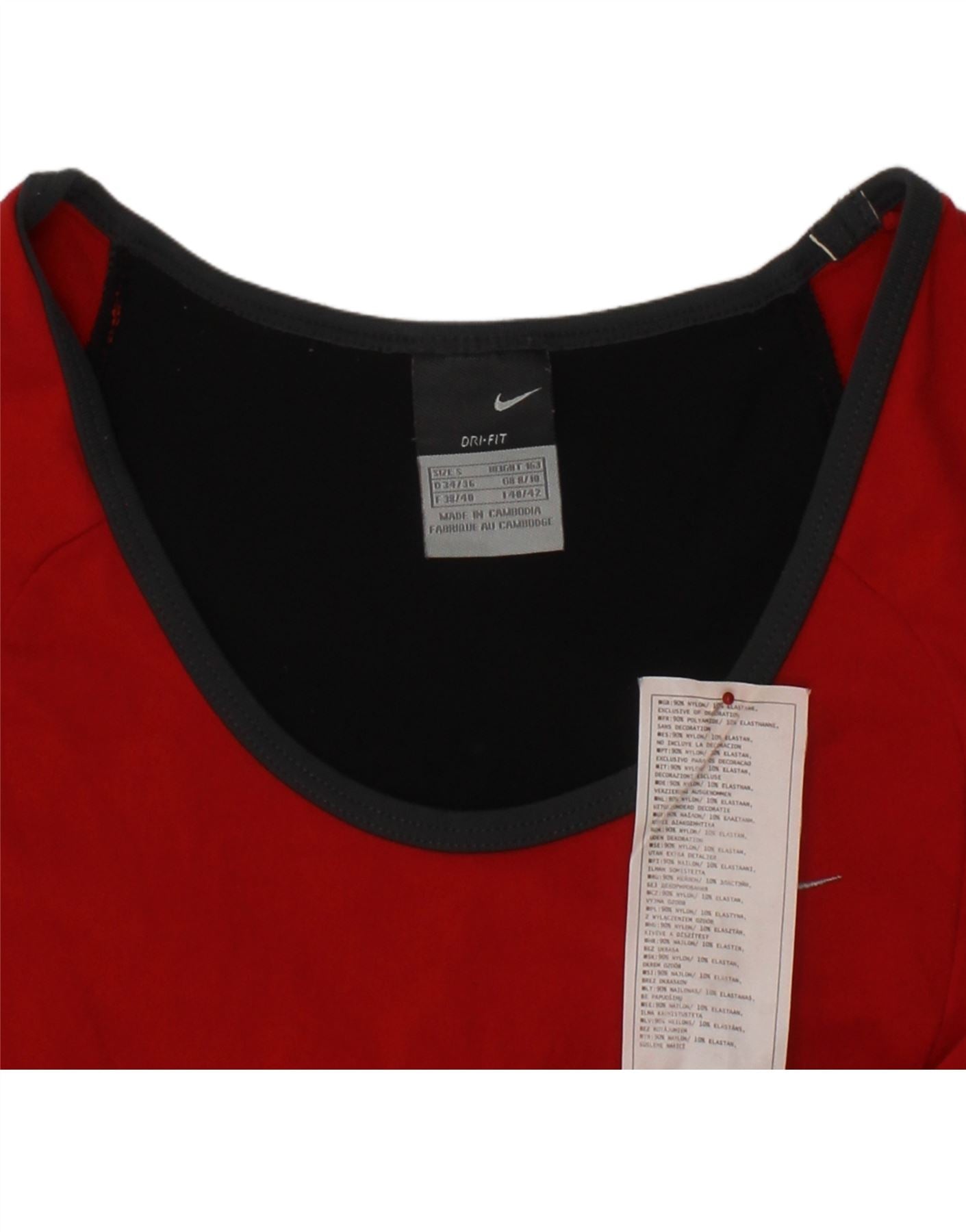 Camiseta feminina Nike Dri Fit Crop Top UK 8/10 Pequeno Vermelho Colourblock Nylon