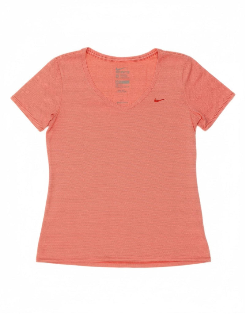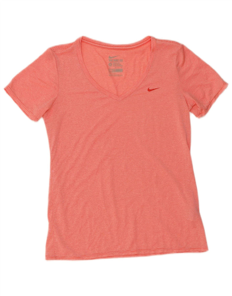 Camiseta feminina NIKE Dri Fit UK 12 poliéster listrado vermelho médio