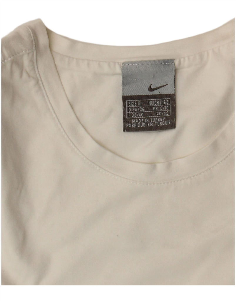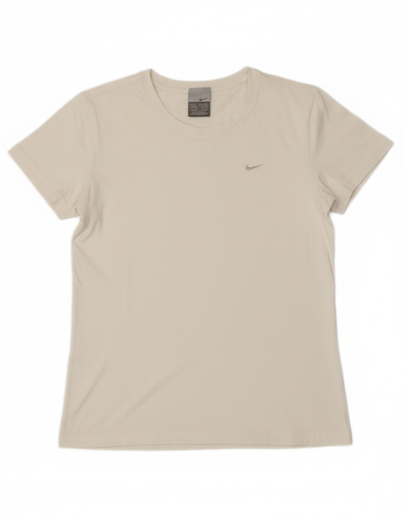 - Descrição da IA: Esta camiseta feminina da Nike é confeccionada em jersey macio de malha esbranquiçada. Possui gola redonda clássica e mangas curtas, proporcionando uma silhueta confortável e versátil. O ajuste regular garante facilidade de movimento. Um logotipo sutil da marca oferece detalhes refinados e exclusivos. Este top é perfeito para esportes ou uso casual.
