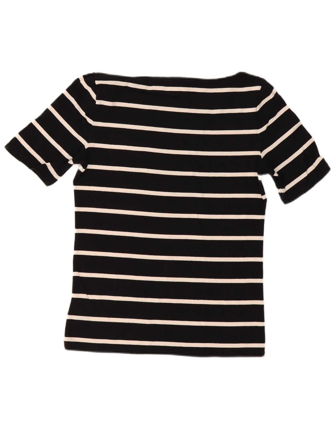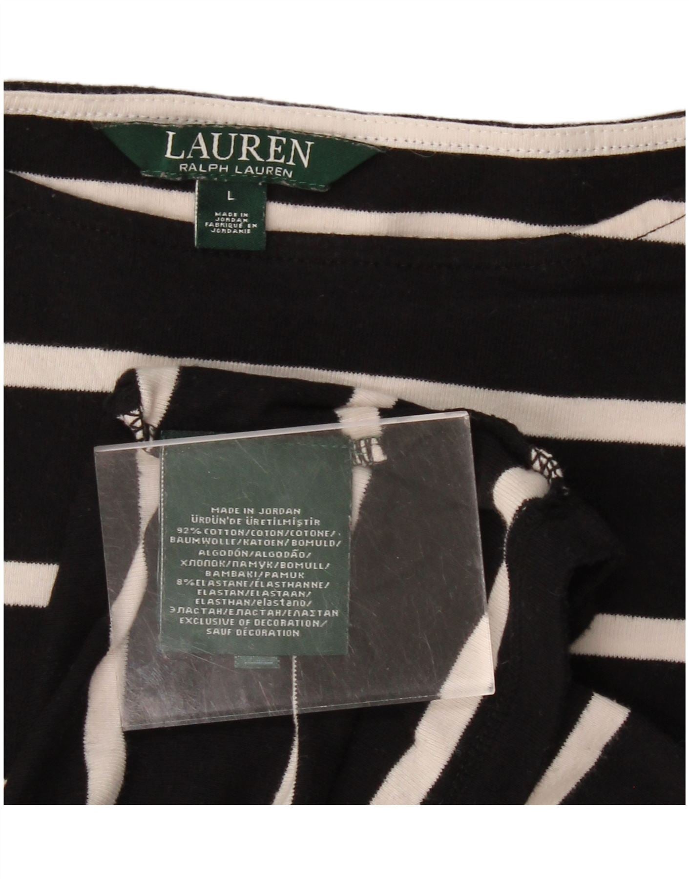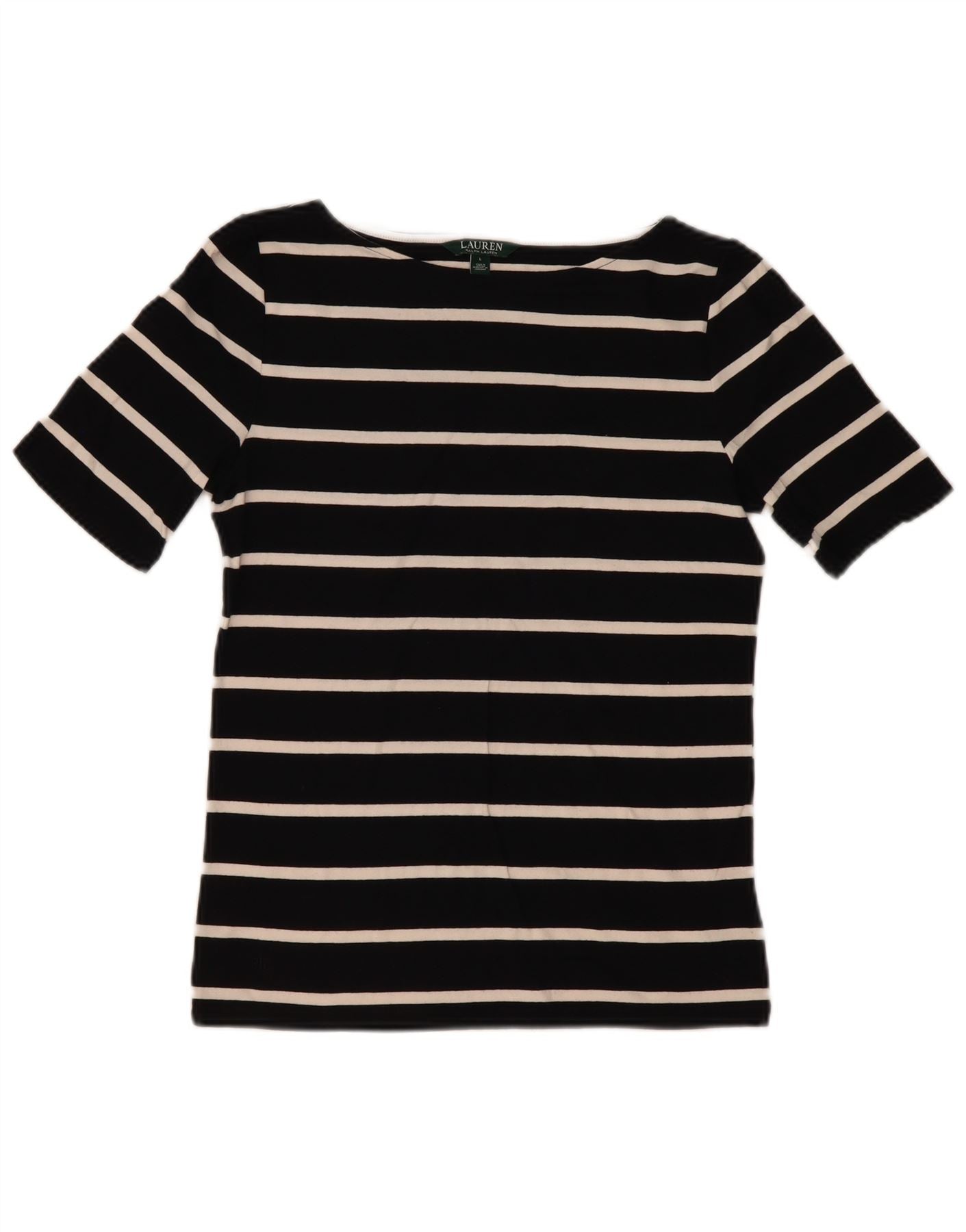 Camiseta feminina RALPH LAUREN UK 14 grande algodão listrado preto