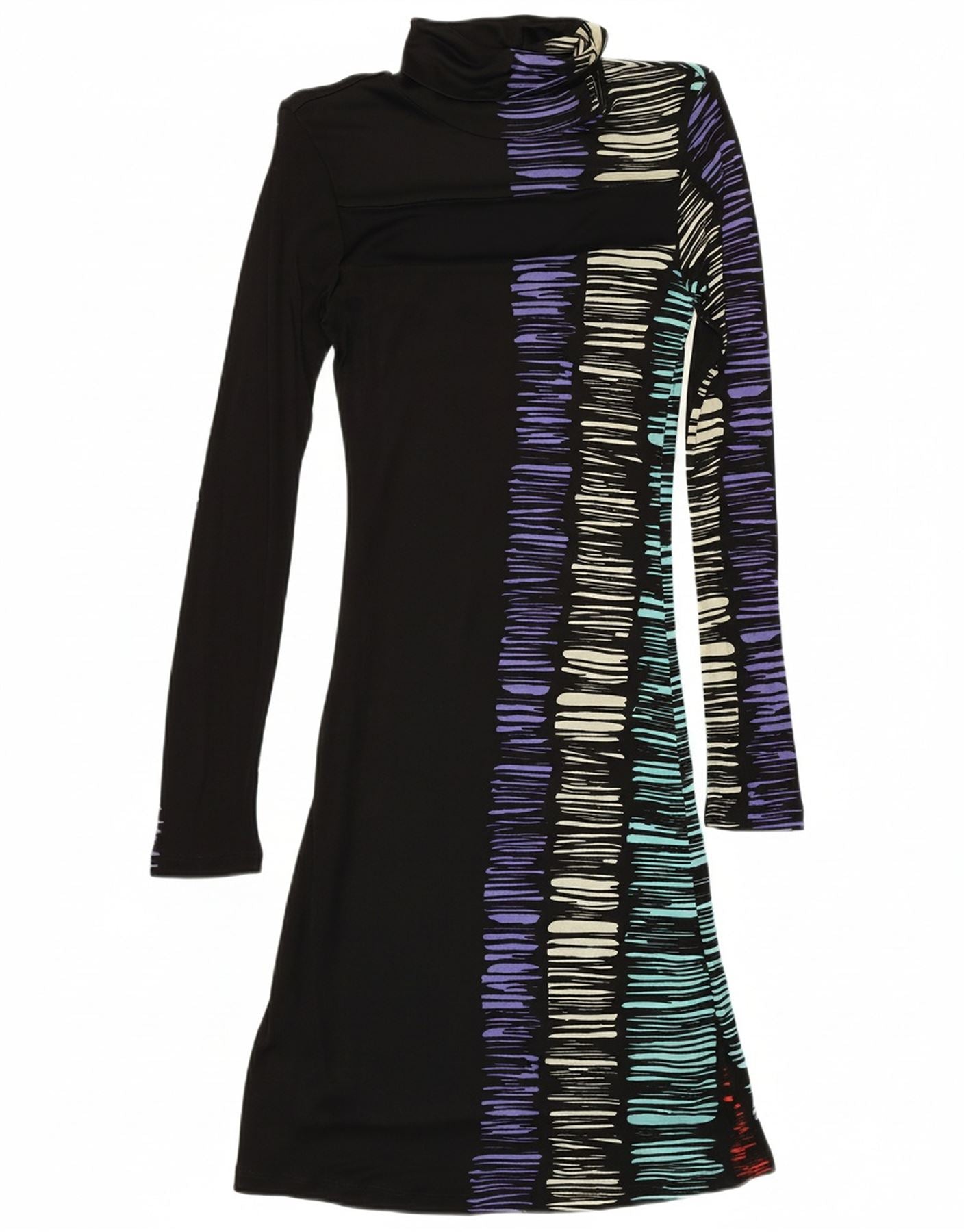 Camiseta feminina VINTAGE com estampa abstrata de manga comprida tamanho 1 XS preto