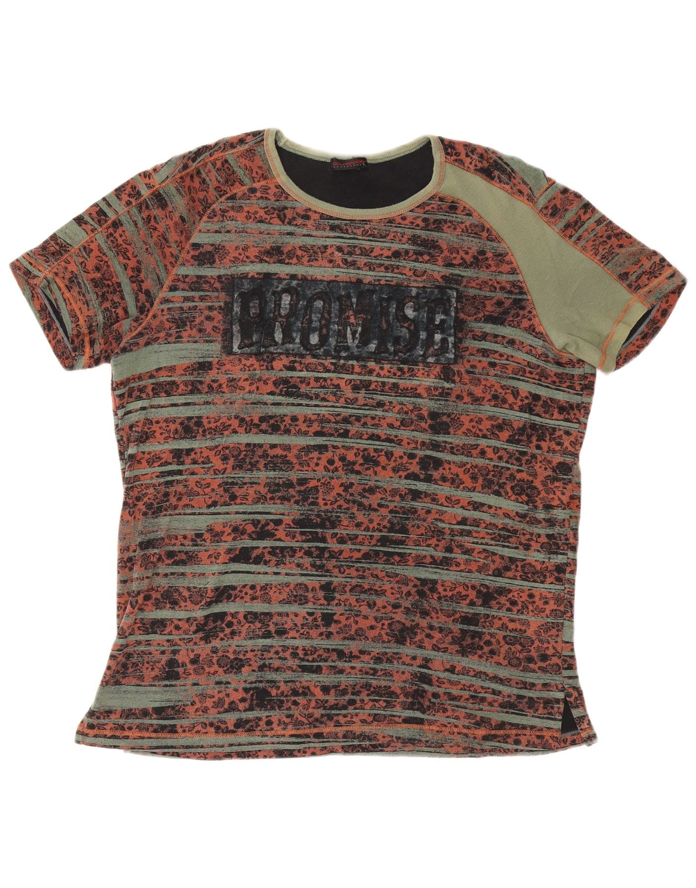 - Descrição da IA: Esta camiseta gráfica masculina Custo Barcelona é confeccionada em tecido de malha confortável, oferecendo uma textura macia. Apresenta um padrão abstrato multicolorido vibrante, incorporando listras em laranja, preto e verde. A gola redonda e as mangas curtas proporcionam uma silhueta clássica. Projetado para um ajuste regular, garante um uso confortável. Um logotipo sutil completa o design, adicionando um toque exclusivo a este pulôver colorido.