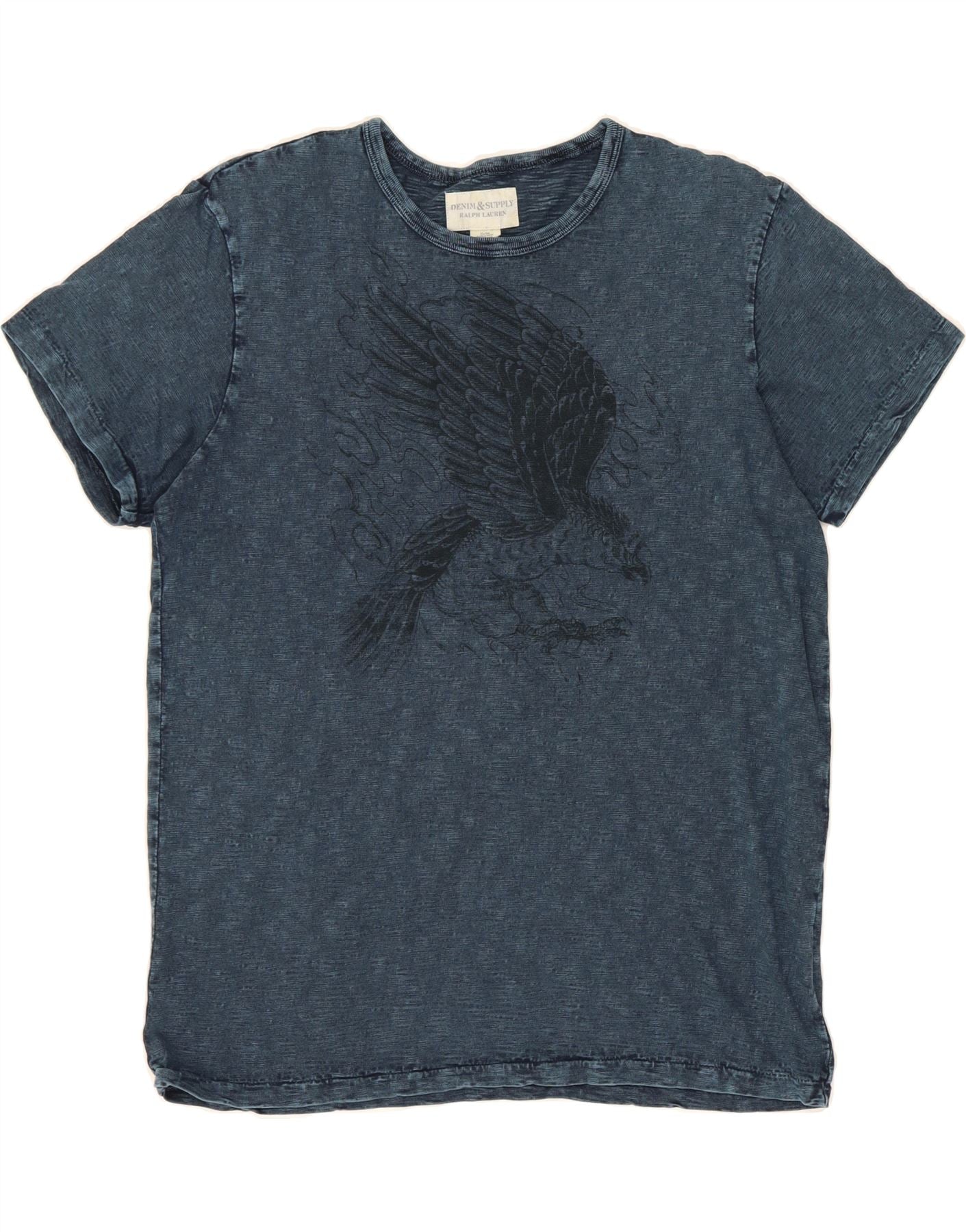 Camiseta gráfica masculina RALPH LAUREN Top XL azul marinho algodão manchado