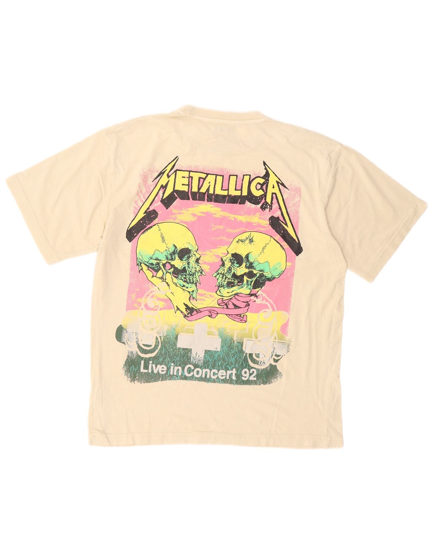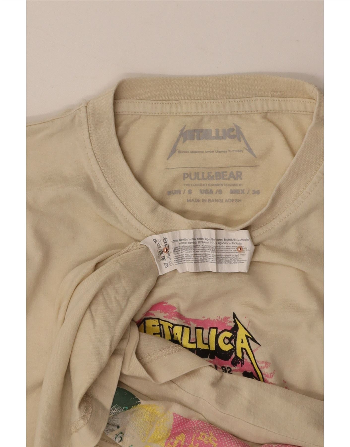 Camiseta masculina com estampa Metallica PULL & BEAR de algodão bege pequeno